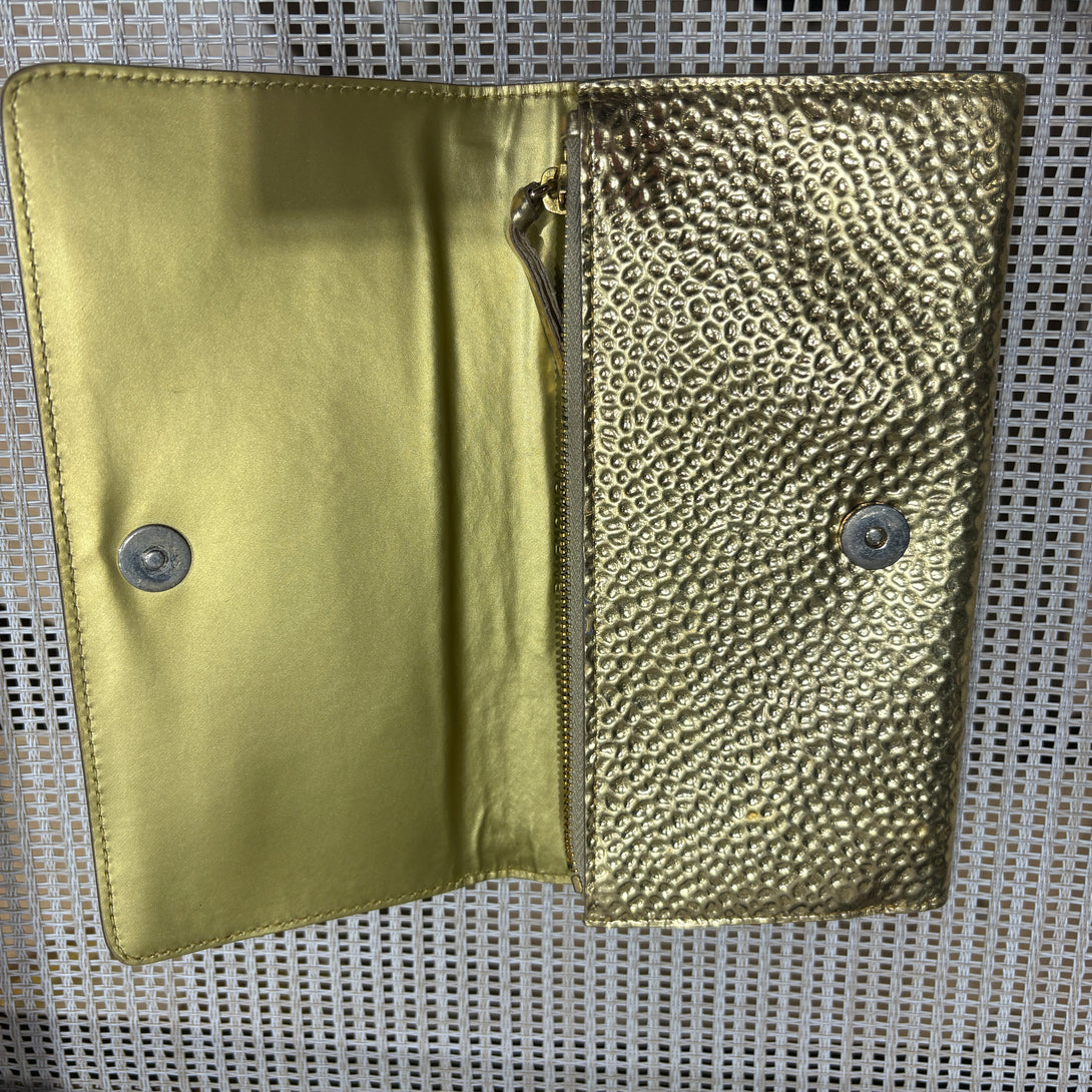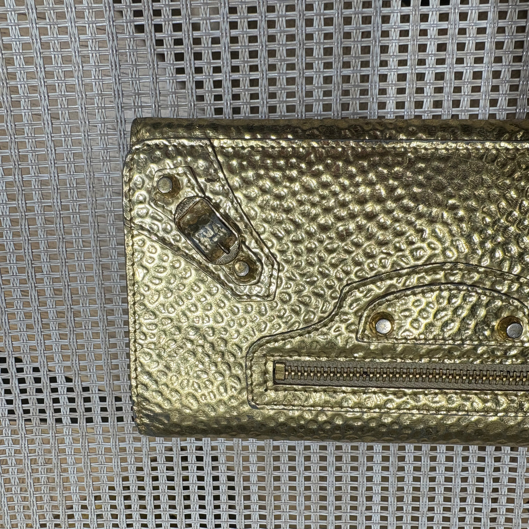 Crafted from luxurious gold calfskin, this pre-owned Balenciaga long wallet combines elegance with functionality. Its spacious interior offers multiple compartments to organize cards, cash, and receipts efficiently. The supple leather ensures durability while maintaining a refined, timeless appeal. Ideal for those who appreciate sophisticated design and lasting quality in their accessories.