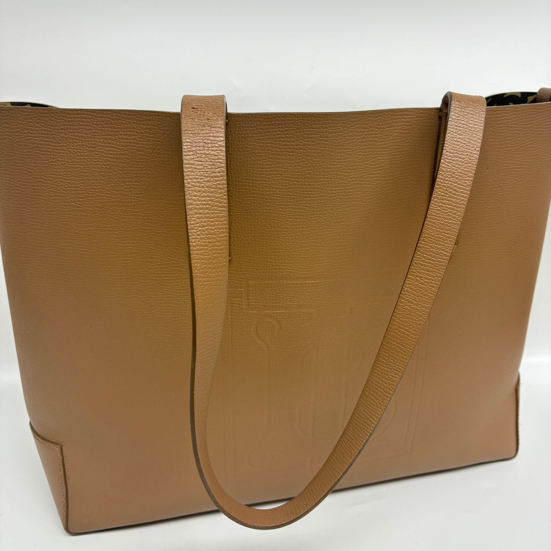 This pre-owned Burberry Sandy Tan handbag combines timeless elegance with durable calfskin leather. Its spacious tote design offers practical versatility for everyday use, while the sandy tan color complements a wide range of styles. Crafted with Burberry's signature attention to detail, this piece balances classic sophistication and functionality, making it a refined addition to any collection.