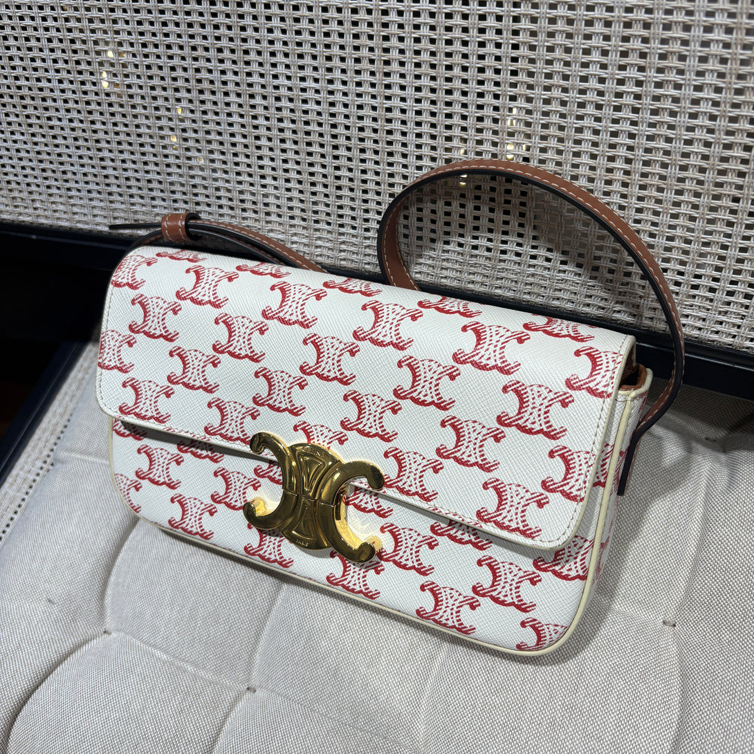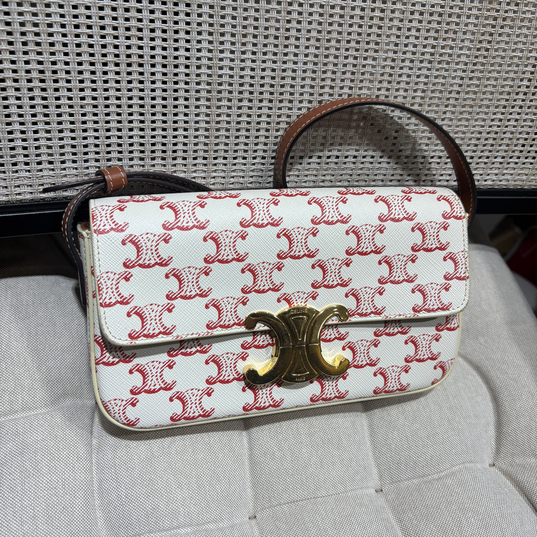 Pre-owned Celine Triomphe White Calfskin Crossbody