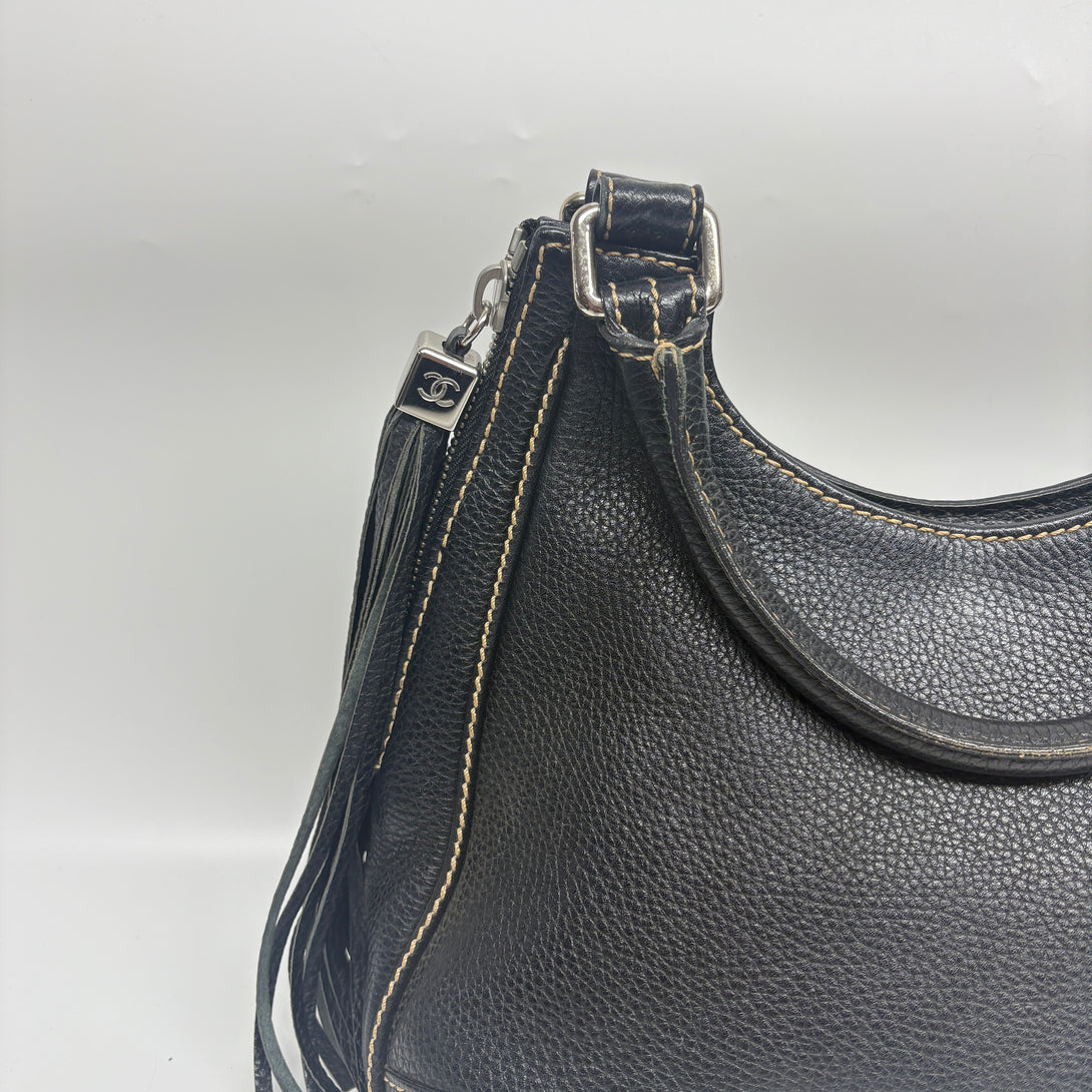 Pre-owned Chanel Black Calfskin Grainy Textured Calfskin Underarm