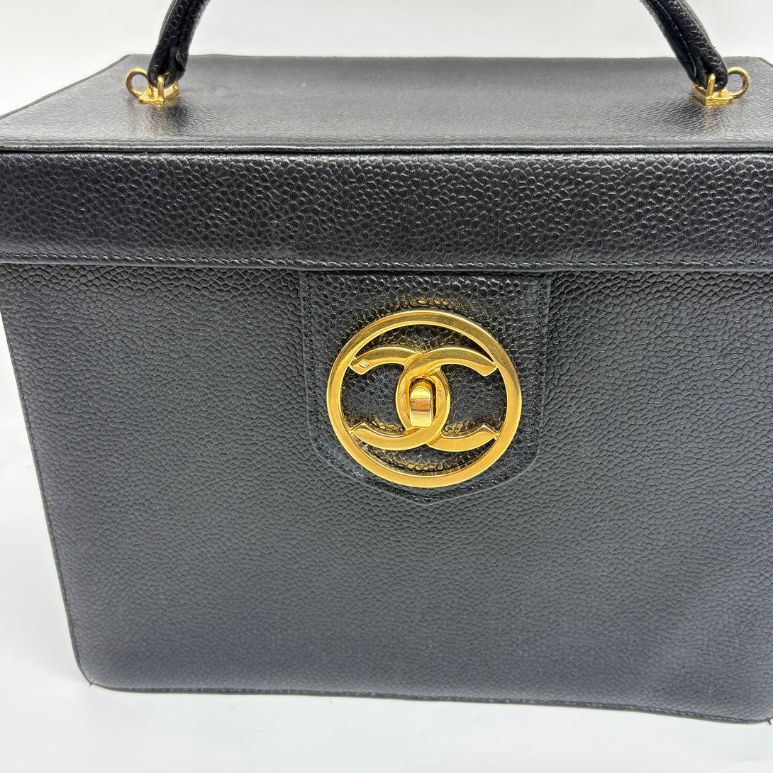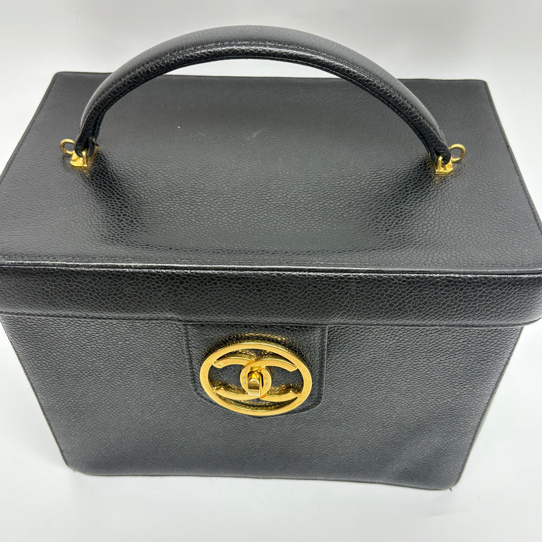 Pre-owned Chanel Black Caviar Vanity Box with Strap