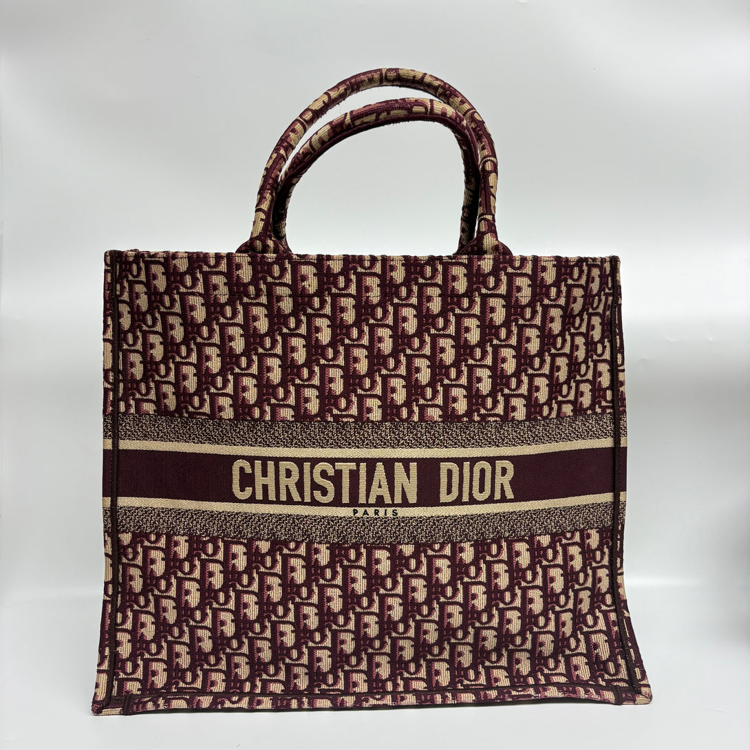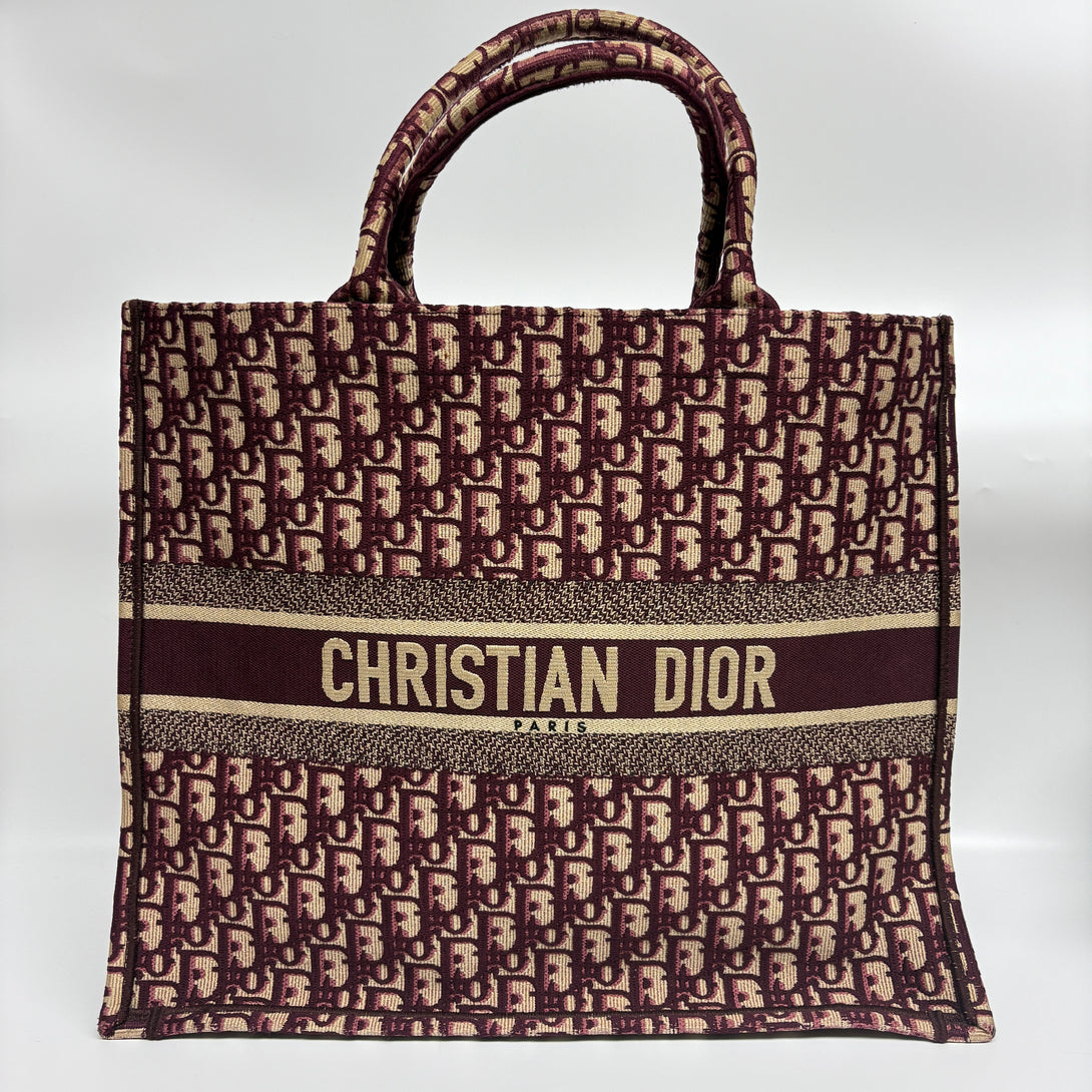 This pre-owned Christian Dior Book Tote in Oblique Burgundy showcases timeless elegance and craftsmanship. Crafted from durable canvas featuring the signature Dior Oblique pattern, this spacious tote offers both style and practicality for everyday use. Its rich burgundy shade adds a sophisticated touch, making it a versatile companion for any outfit. Ideal for carrying essentials with ease, this tote blends iconic design with functional luxury.