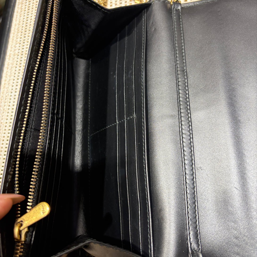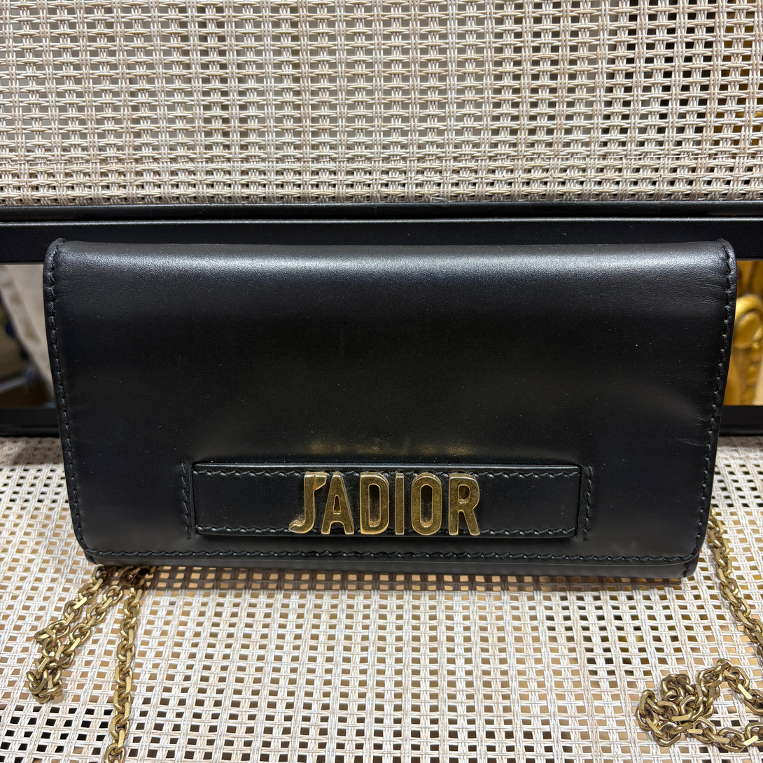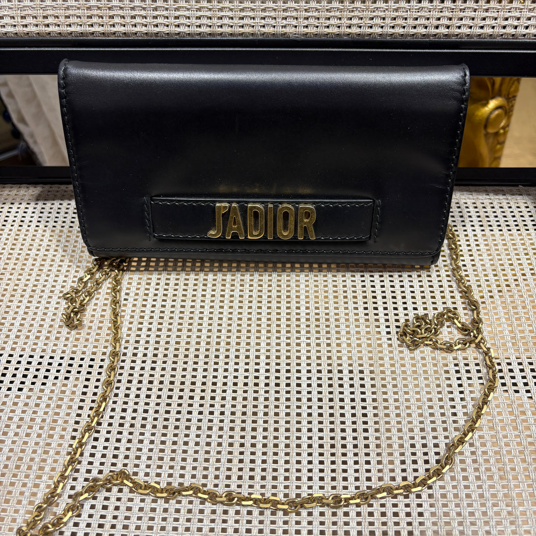 This pre-owned Christian Dior Jadior Wallet on Chain (WOC) in black calfskin offers a refined blend of elegance and practicality. Crafted from smooth, durable calfskin, its compact design features a versatile crossbody strap for effortless wear. Ideal for carrying essentials with style, this piece reflects Dior’s signature sophistication while providing everyday functionality with timeless appeal.