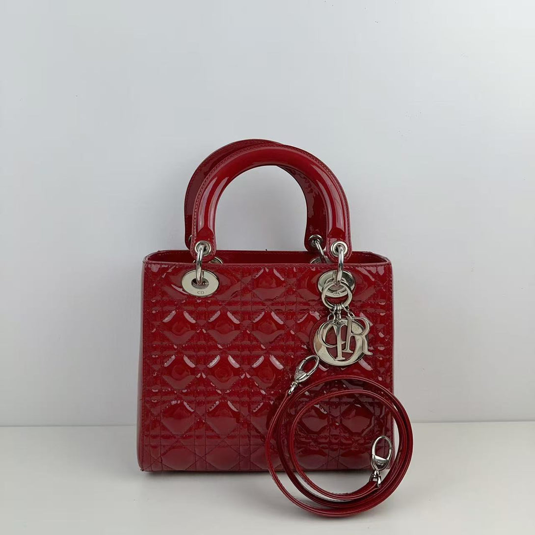 Pre-owned Christian Dior Lady Dior Patent Red Leather
