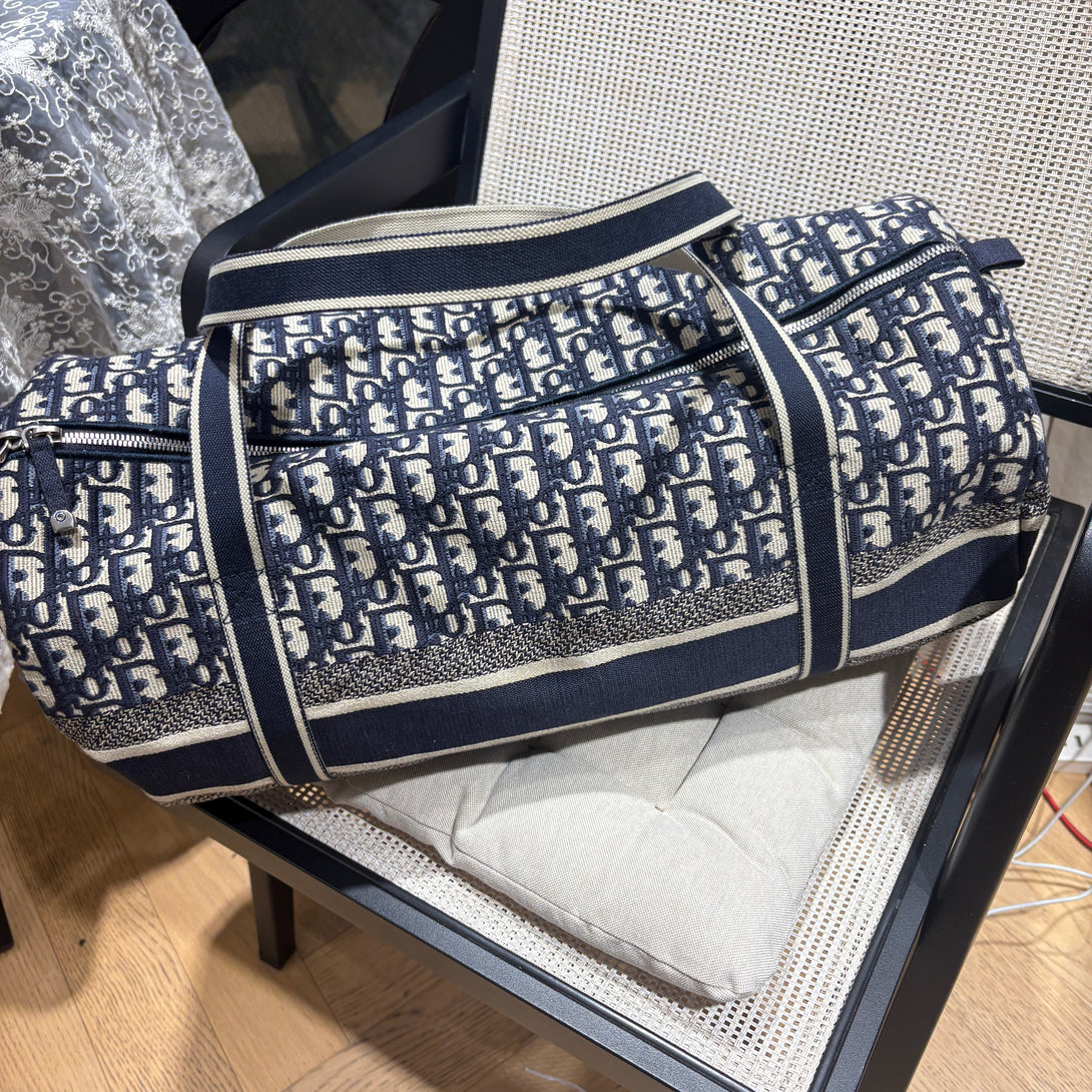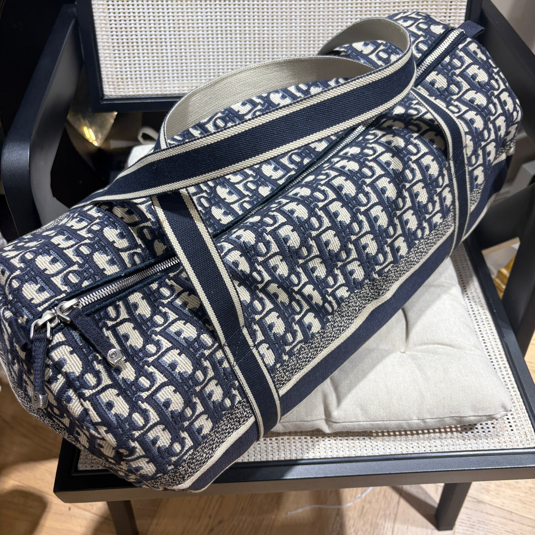 Pre-owned Christian Dior Navy Oblique Pattern Travel Bag