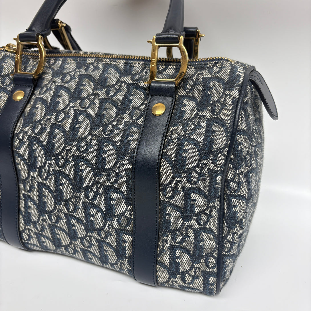 Pre-owned Christian Dior Navy Oblique Quilt Boston Handbag
