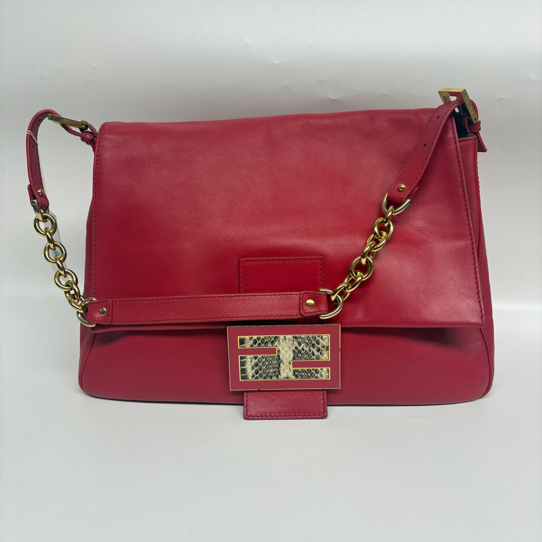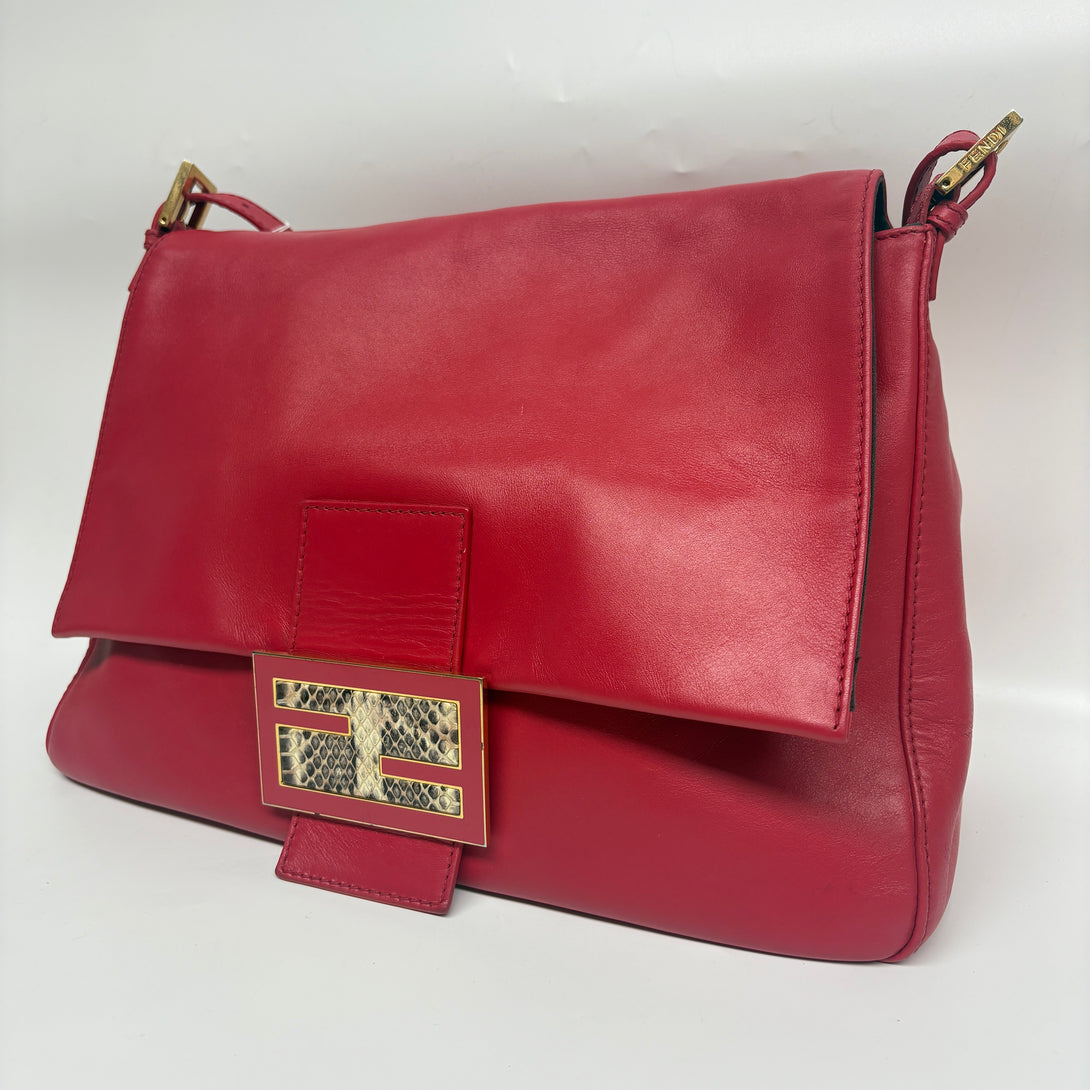 Pre-owned Fendi Baguette Large Red Calfskin Crossbody Hobo