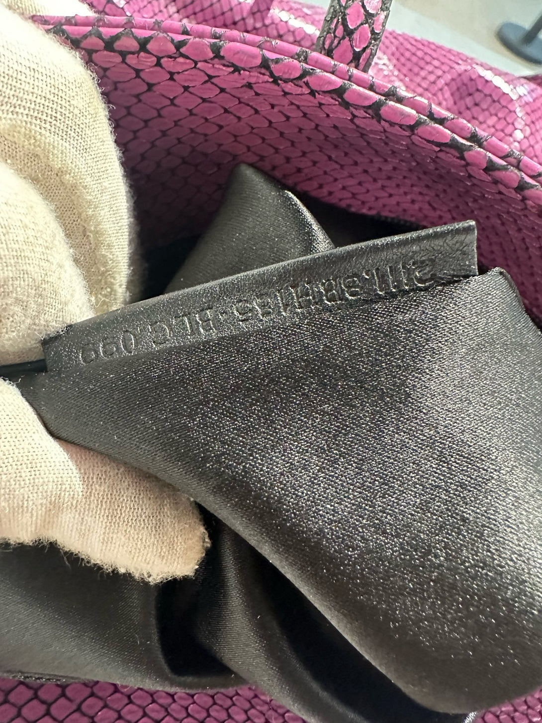 This pre-owned Fendi tote showcases exquisite craftsmanship with its exotic python skin, offering a luxurious texture and unique pattern. Designed for both style and functionality, it provides ample space for your essentials while making a refined statement. Its durable exotic hide ensures longevity, making it a prized addition for collectors and fashion connoisseurs alike. Ideal for those seeking elegance and exclusivity in a handbag.