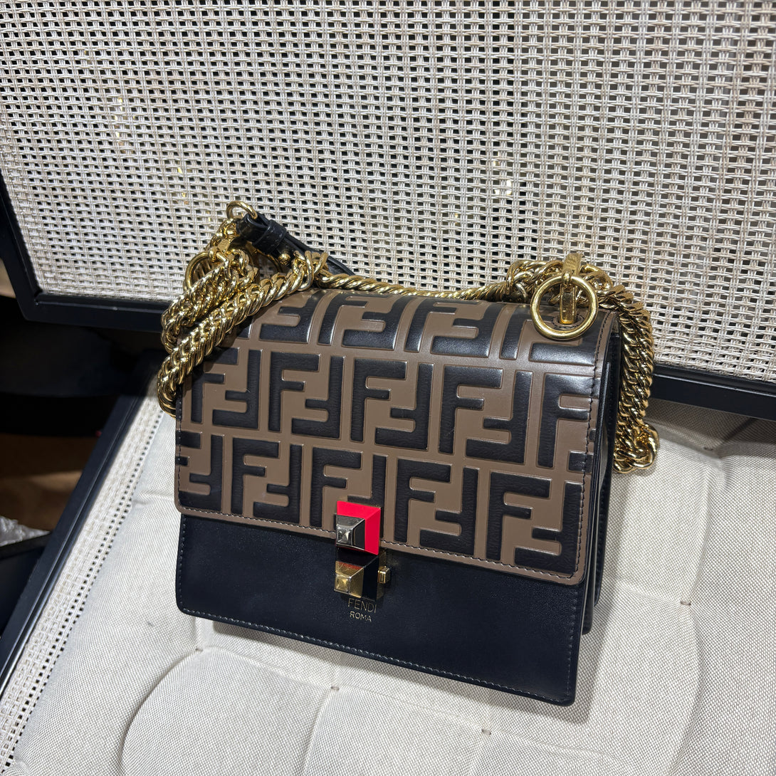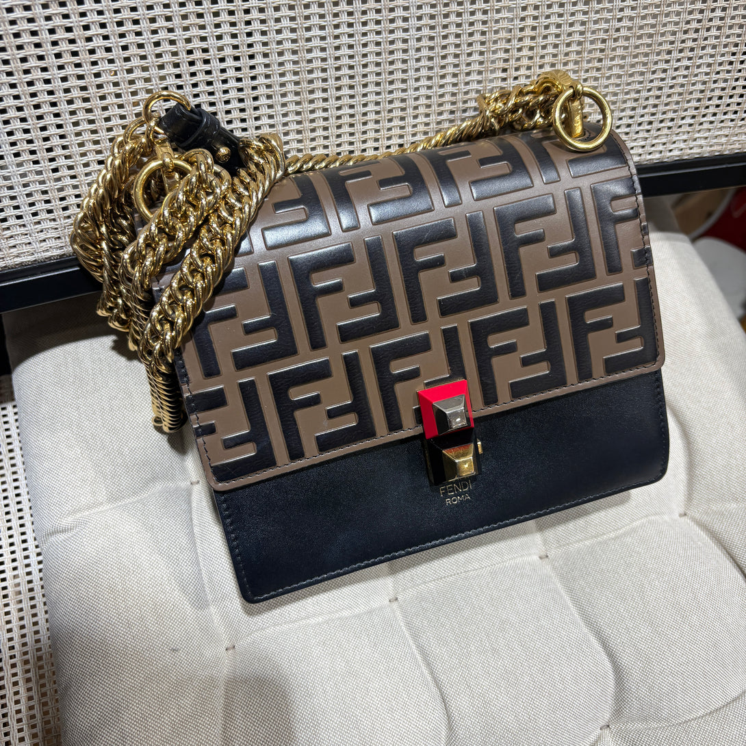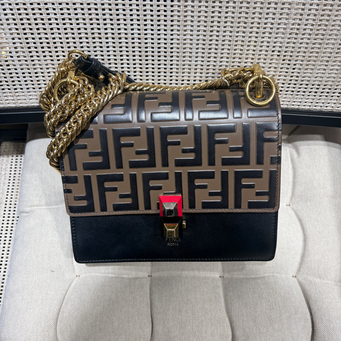 Pre-owned Fendi Kani FF Logo Flap Calfskin Crossbody