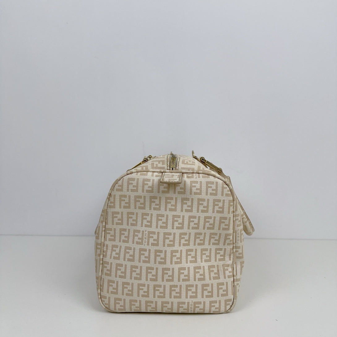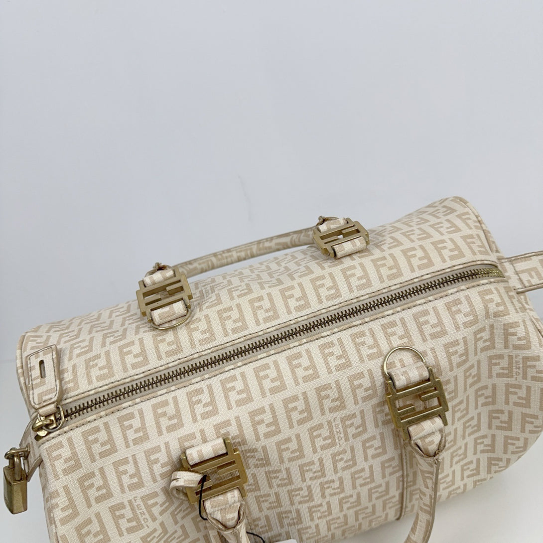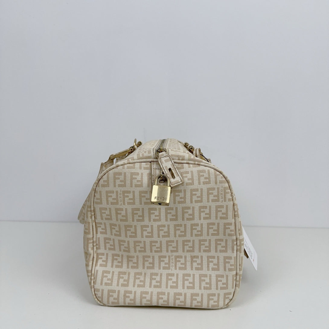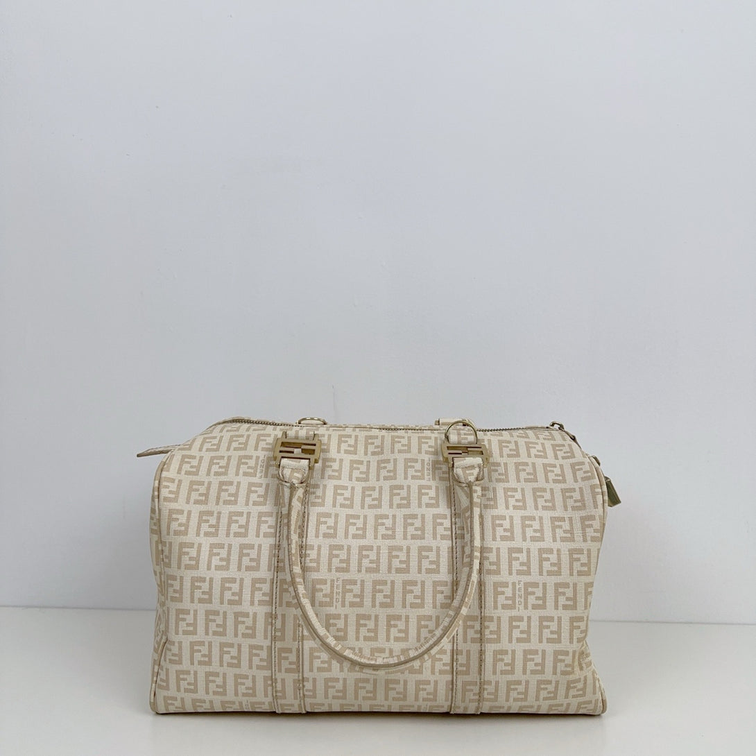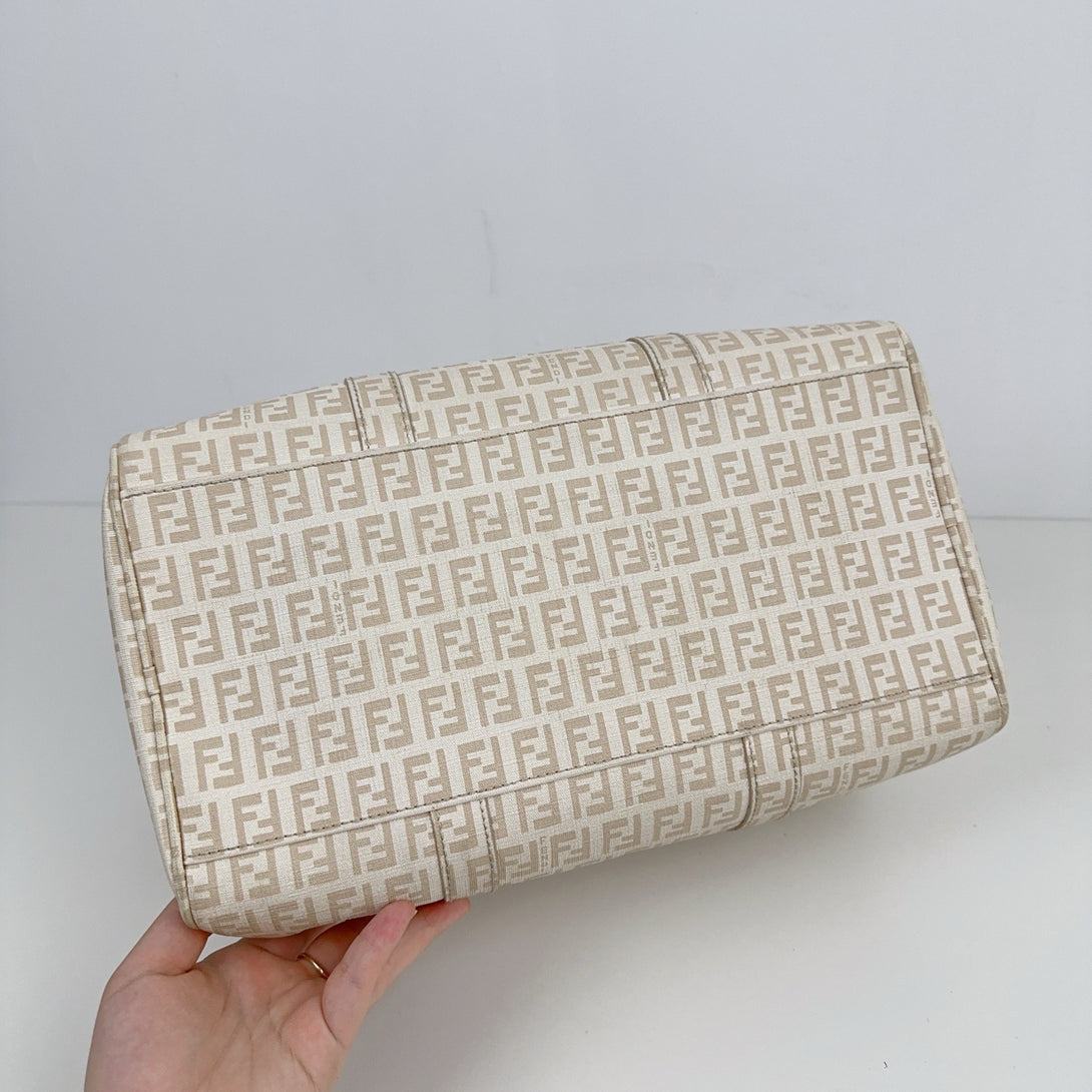 This pre-owned Fendi White FF Monogram Handbag combines iconic luxury with timeless design. Crafted with the signature FF monogram pattern in a clean white palette, it offers both style and versatility. The spacious interior accommodates everyday essentials, making it an ideal choice for discerning collectors and fashion enthusiasts seeking a sophisticated statement piece. Its authentic craftsmanship ensures lasting quality, reflecting Fendi’s dedication to luxury and elegance.