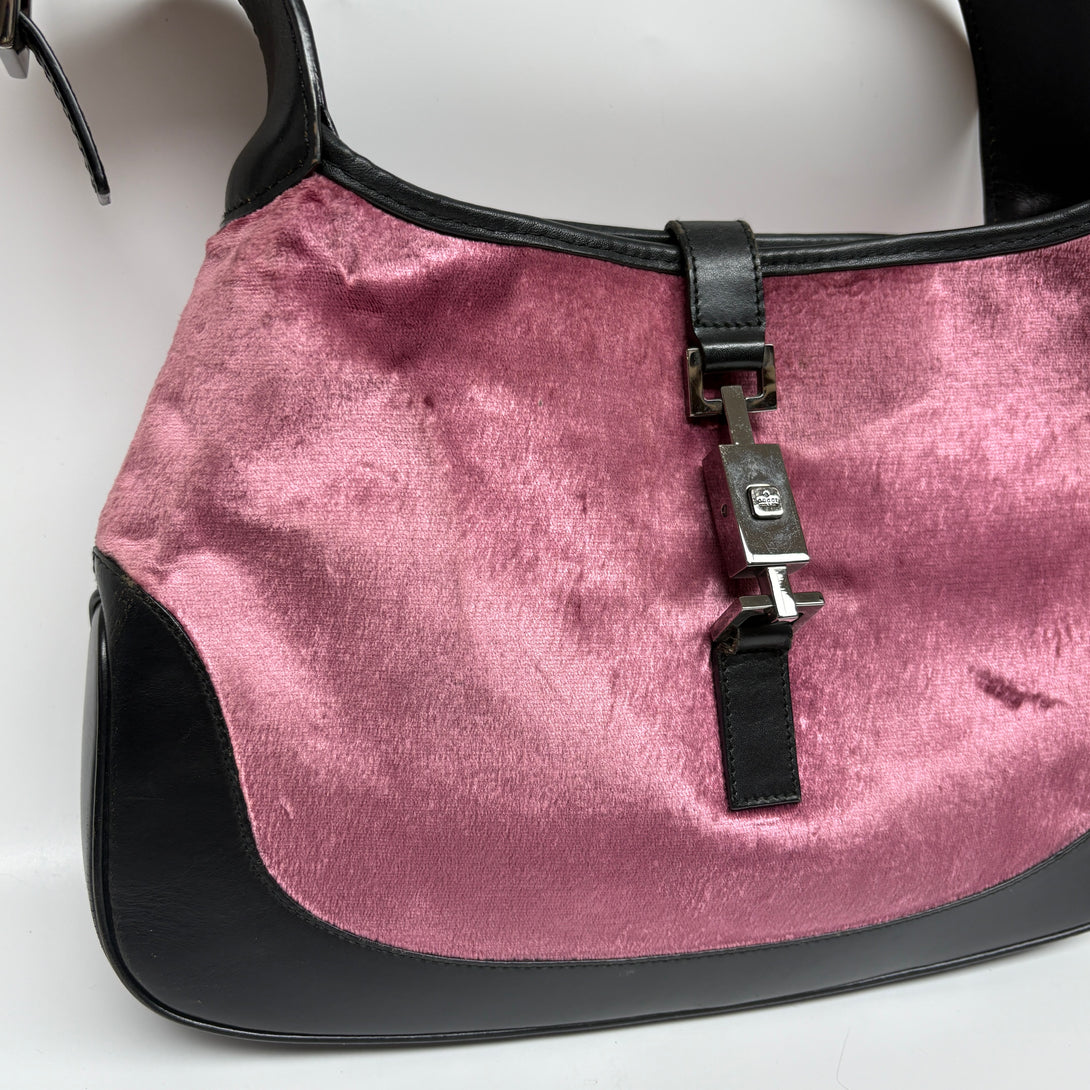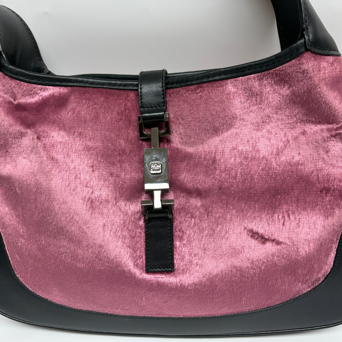 Pre-owned Gucci 1961 Jacky Pink Velvet Black Calfskin