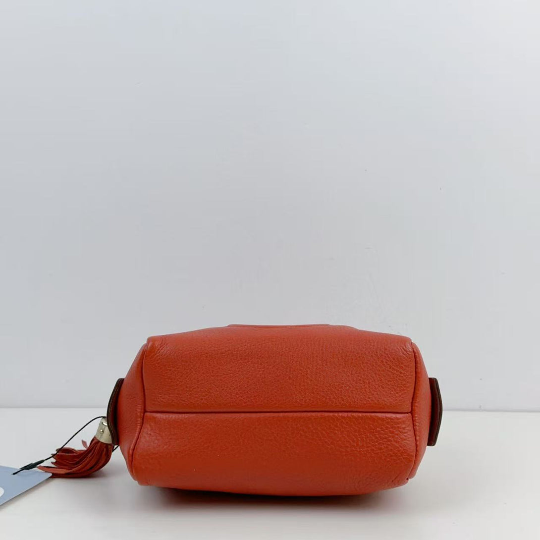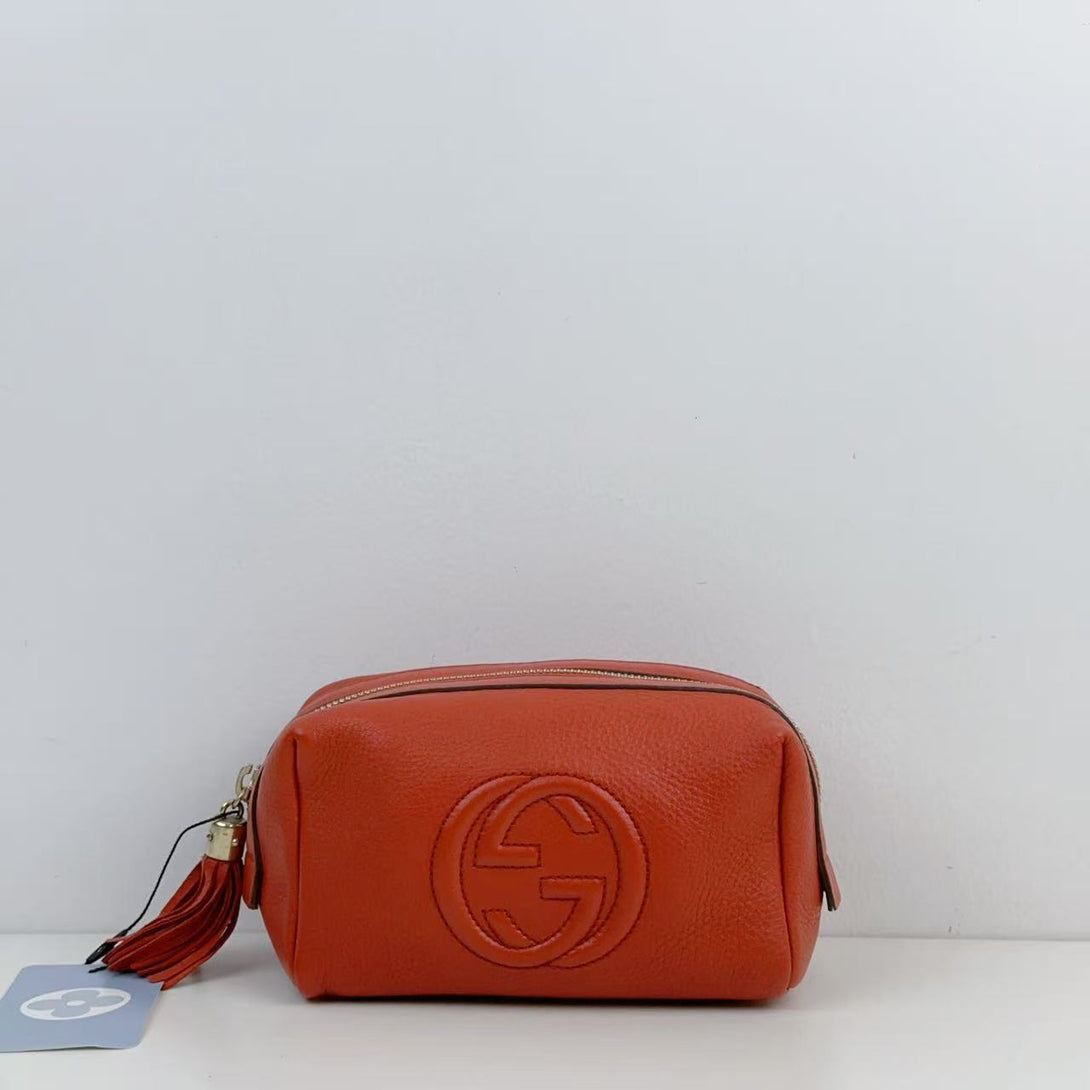 Elevate your collection with this pre-owned Gucci Interlocking Crossbody in vibrant orange calfskin. Expertly crafted, it features the iconic interlocking Gucci logo for a timeless statement. The premium calfskin leather offers durability with a refined texture, while the compact crossbody design ensures hands-free convenience. Perfect for those seeking luxury with versatile functionality, this piece blends bold color with classic craftsmanship, making it an essential accessory for discerning fashion enthusiasts.