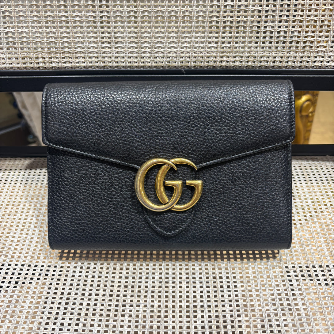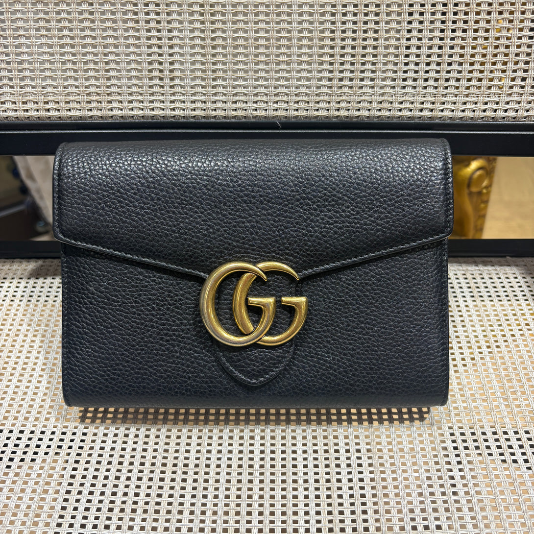 Pre-owned Gucci Marmot Black Graniy Calfskin WOC Crossbody