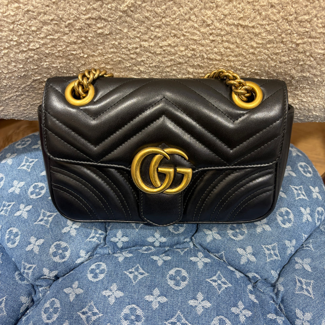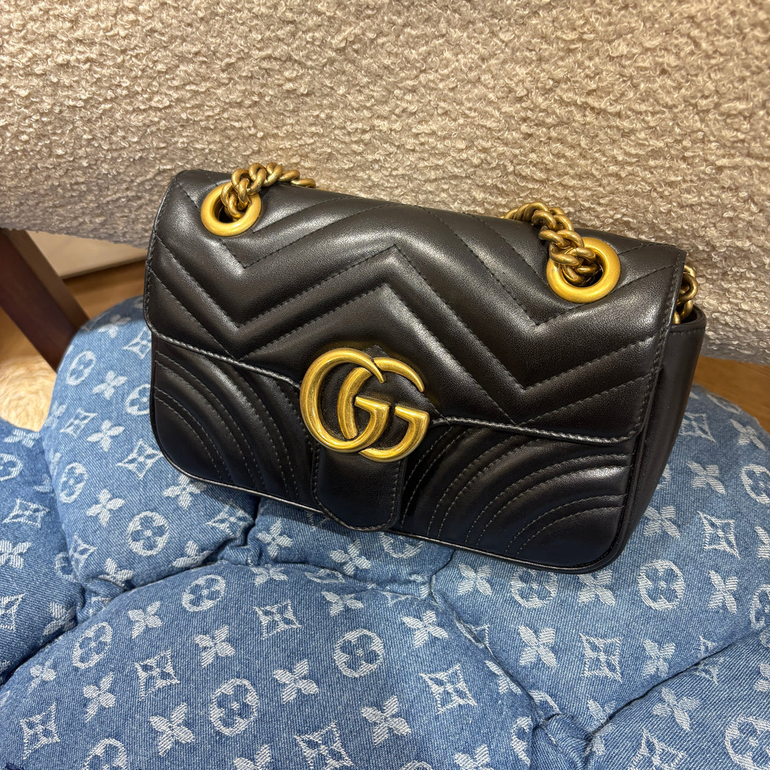 Pre-owned Gucci Marmot Black Mateless Calfskin Crossbody