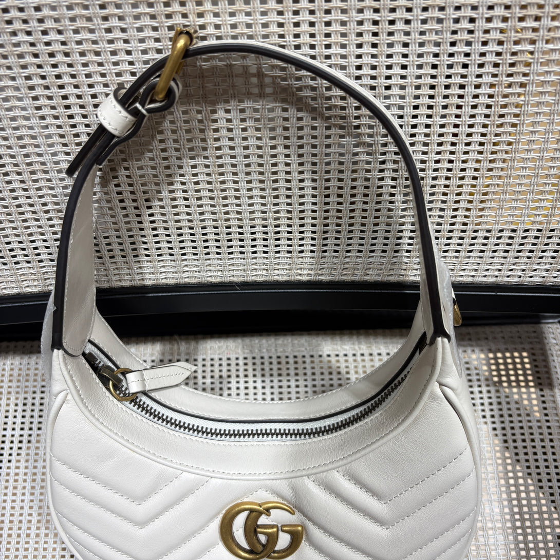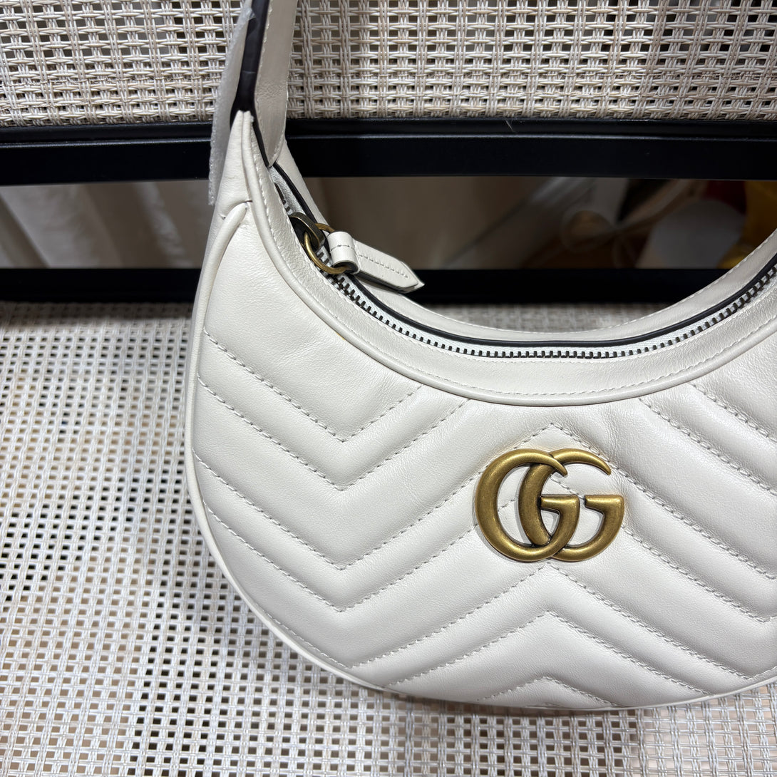Pre-owned Gucci Marmot Hobo White Mateless Calfskin Underarm