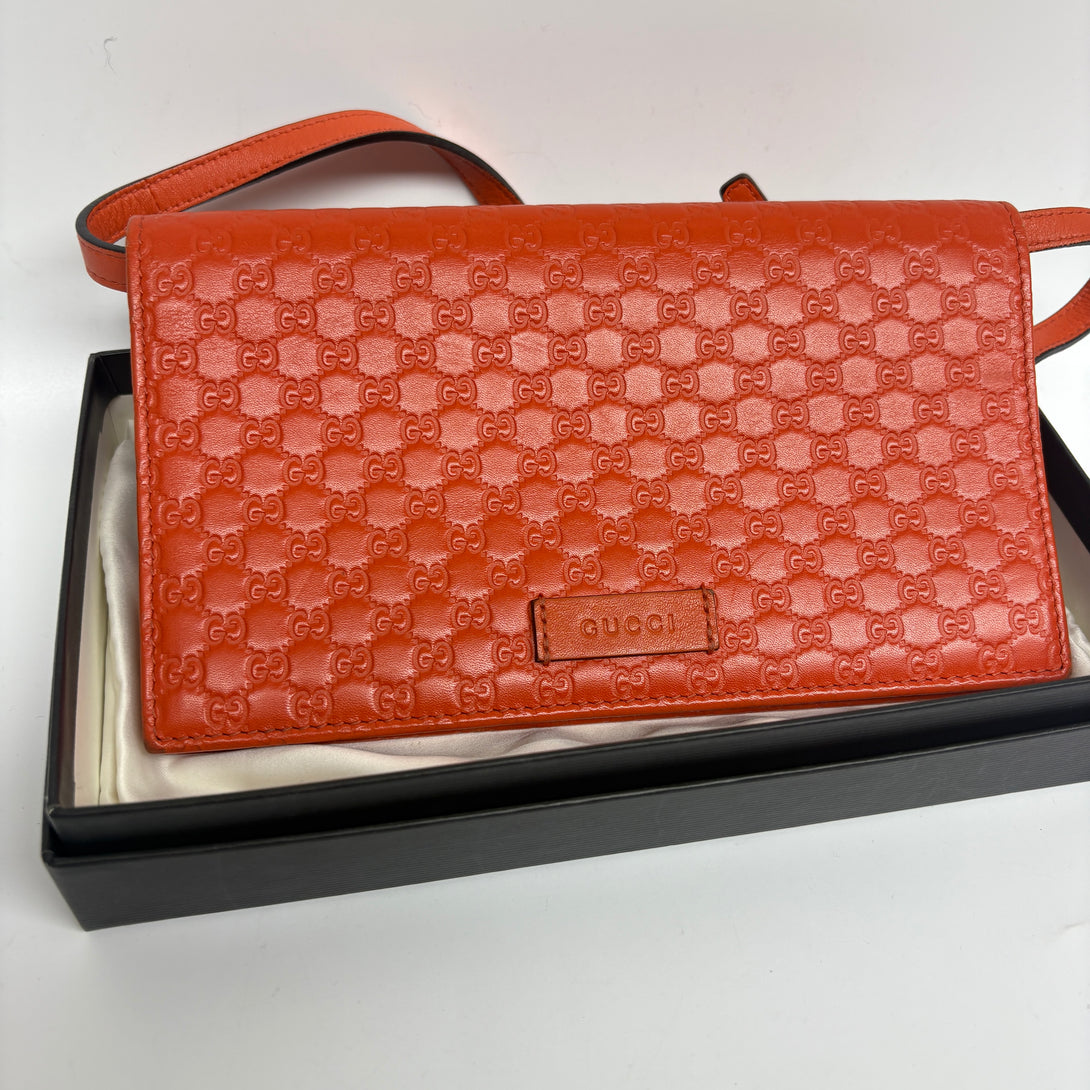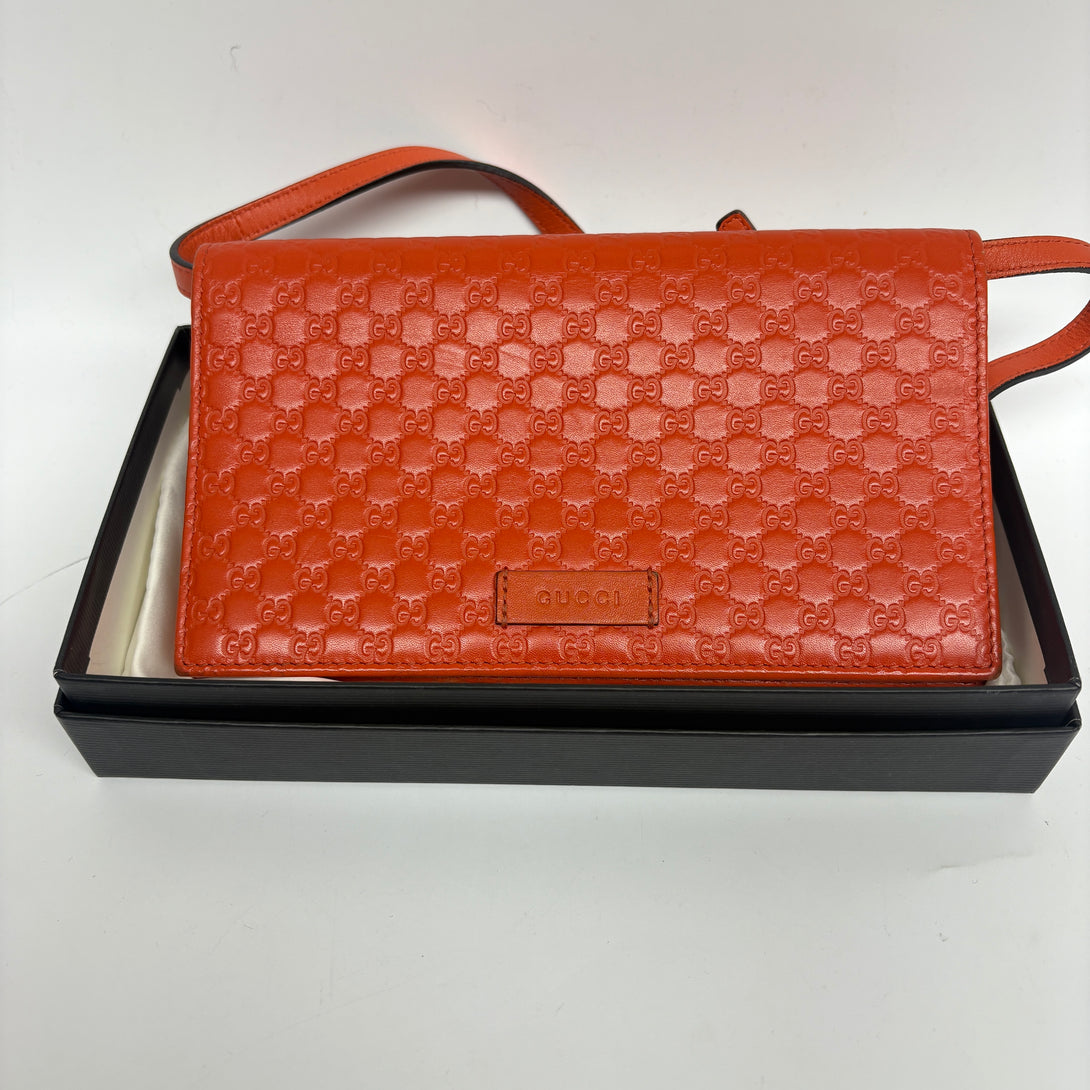 Pre-owned Gucci Orange Calfskin Embossed GG Crossbody