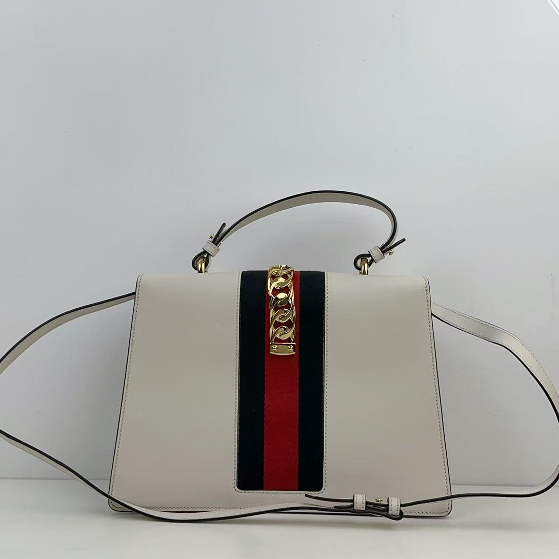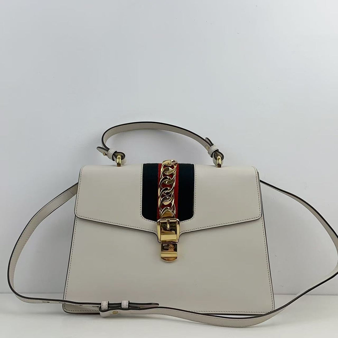 Pre-owned Gucci Sylvia White Calfskin Large Crossbody