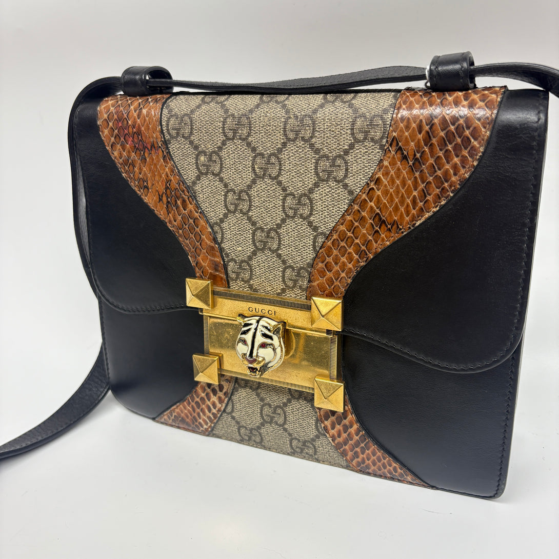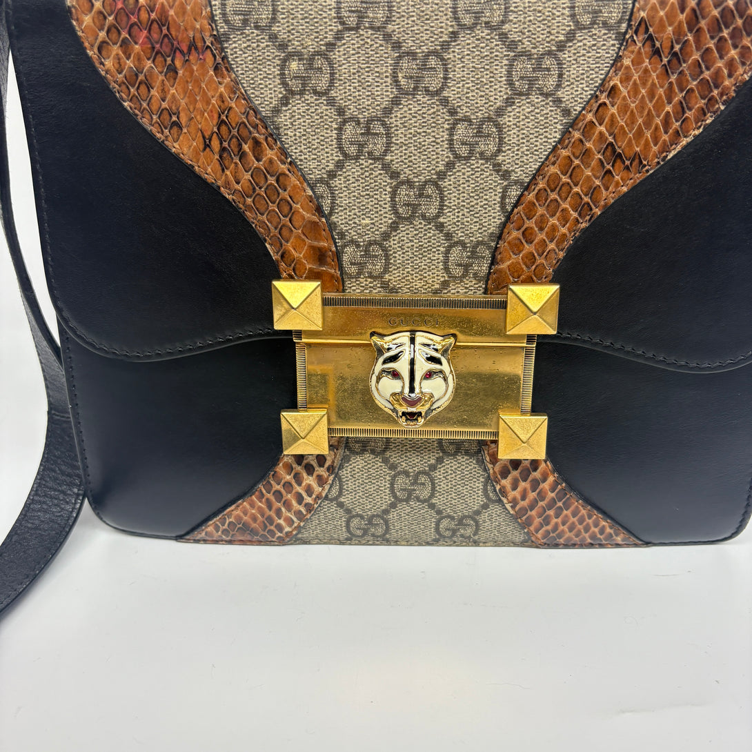 Pre-owned Gucci Tiger Head Python Calfskin Crossbody
