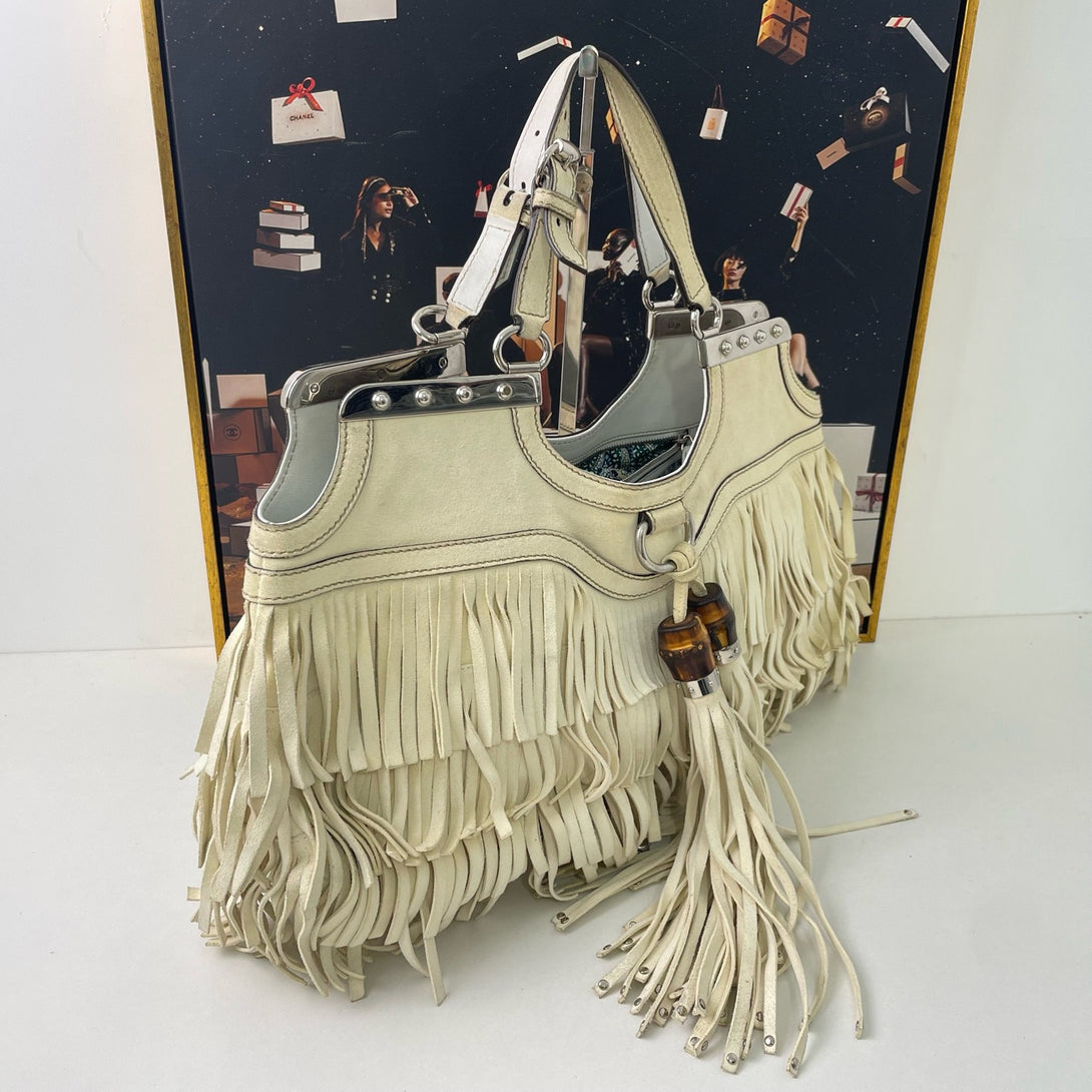 Pre-owned Gucci Vintage Tassel Bamboo Handle Handbag