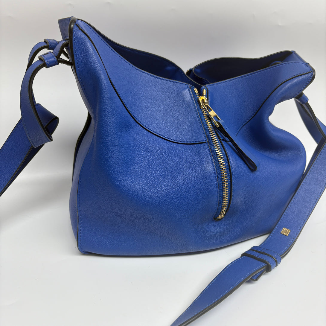 The pre-owned Loewe Hammock Crossbody in royal blue calfskin combines versatility with refined craftsmanship. Its supple leather and distinctive silhouette offer both durability and style, making it suitable for day-to-night wear. The adjustable straps allow multiple carrying options, while the spacious interior provides practical storage without compromising elegance. This timeless piece reflects Loewe’s expertise in luxury design for those seeking a sophisticated accessory with everyday functionality.