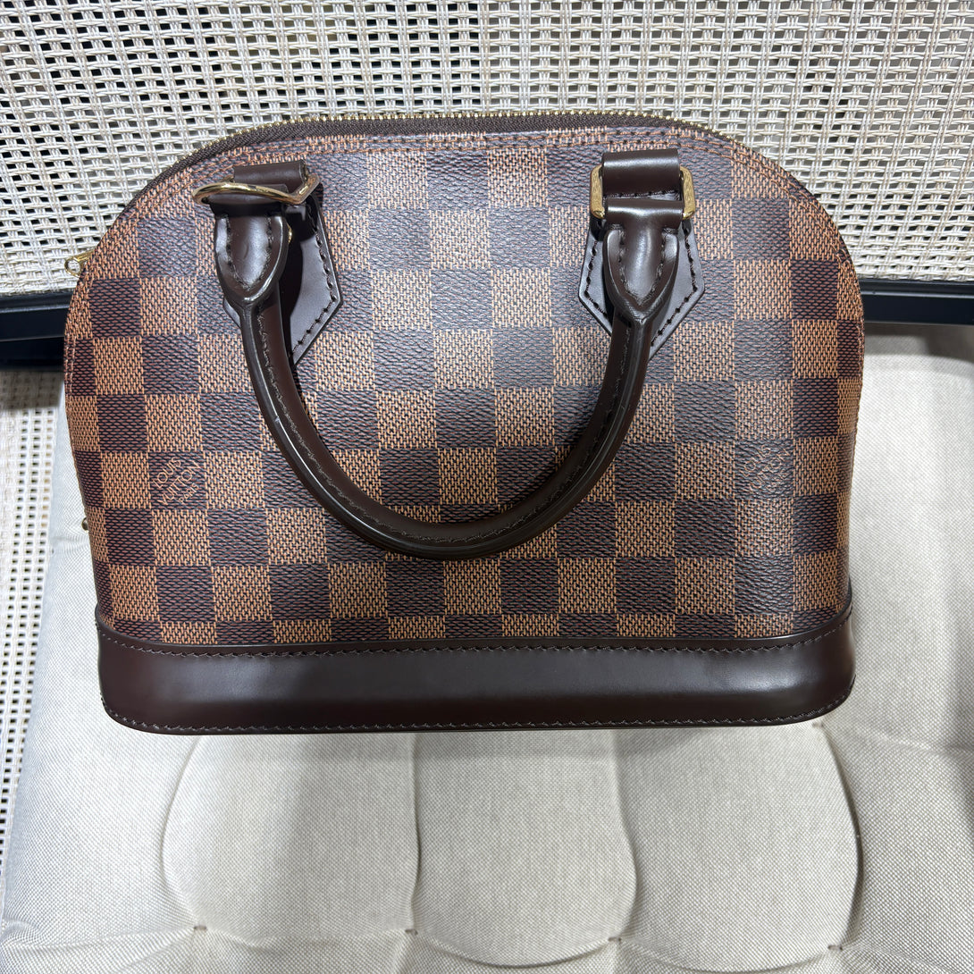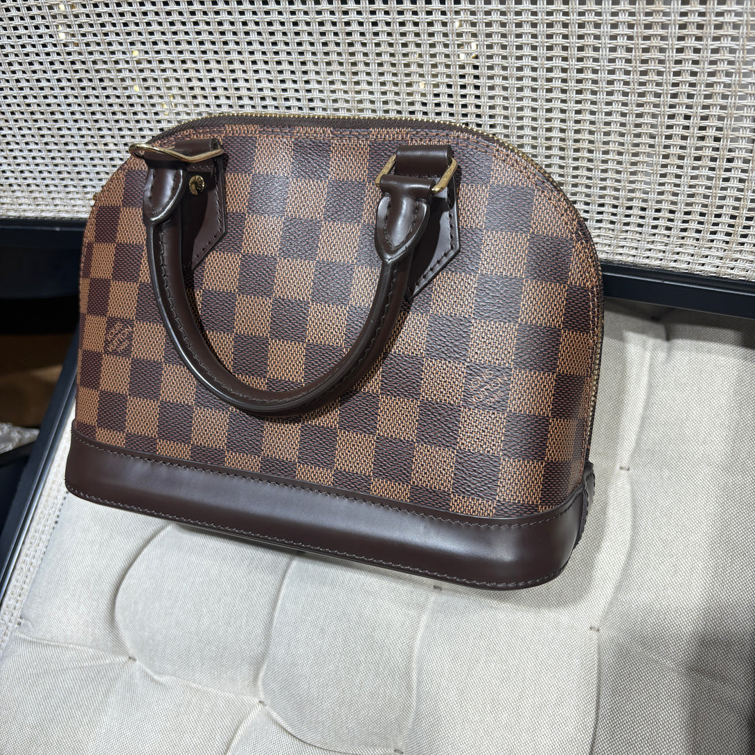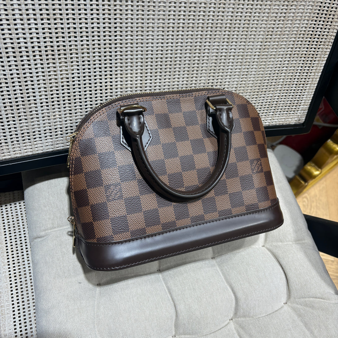 Elevate your collection with this authentic pre-owned Louis Vuitton Alma BB in Damier Ebène canvas. This iconic silhouette combines timeless elegance with practical versatility, featuring the signature LV hardware and structured shape that defines the Alma line. The rich Damier pattern offers sophisticated appeal that complements any wardrobe. Complete with crossbody functionality for effortless everyday wear, this investment piece delivers the luxury and craftsmanship Louis Vuitton is renowned for. A discerning choice for those seeking authentic designer style with enduring value.