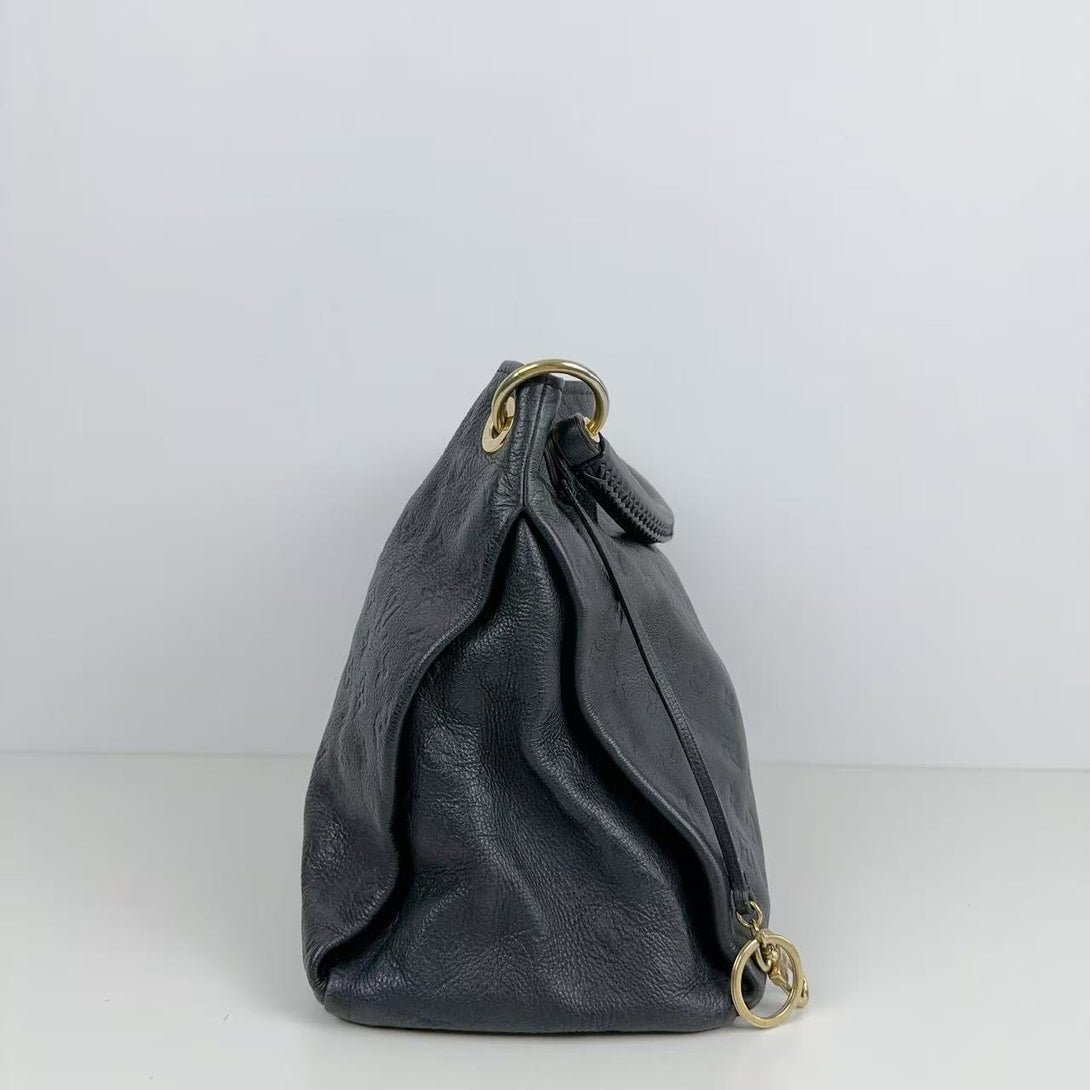 This pre-owned Louis Vuitton Arsty shoulder bag in black embossed leather combines iconic style with versatile functionality. Its spacious interior and secure closure make it perfect for daily use, while the embossed design adds a distinctive touch of luxury. Expertly crafted, this underarm bag balances elegance and practicality for a sophisticated accessory that elevates any outfit.