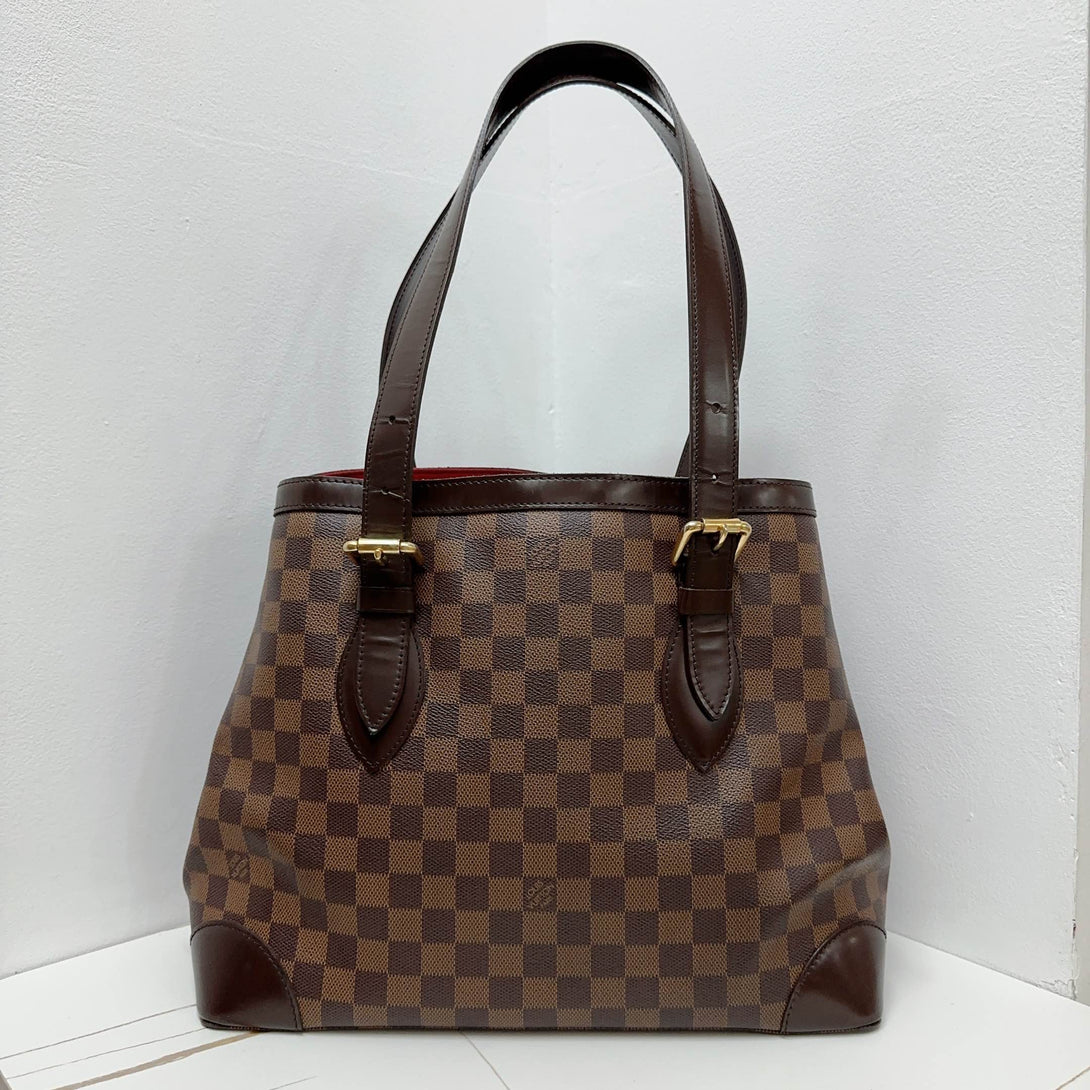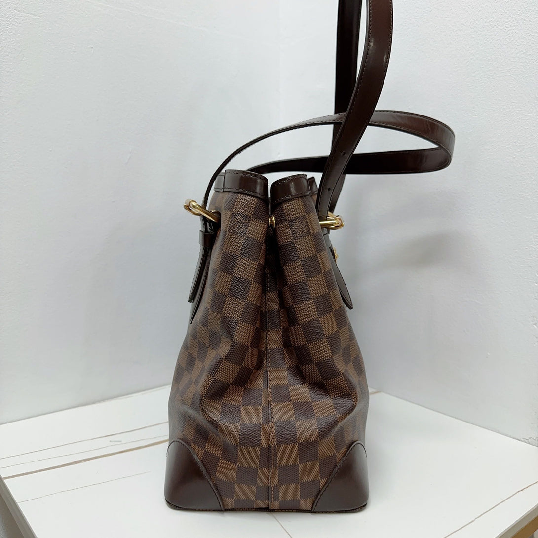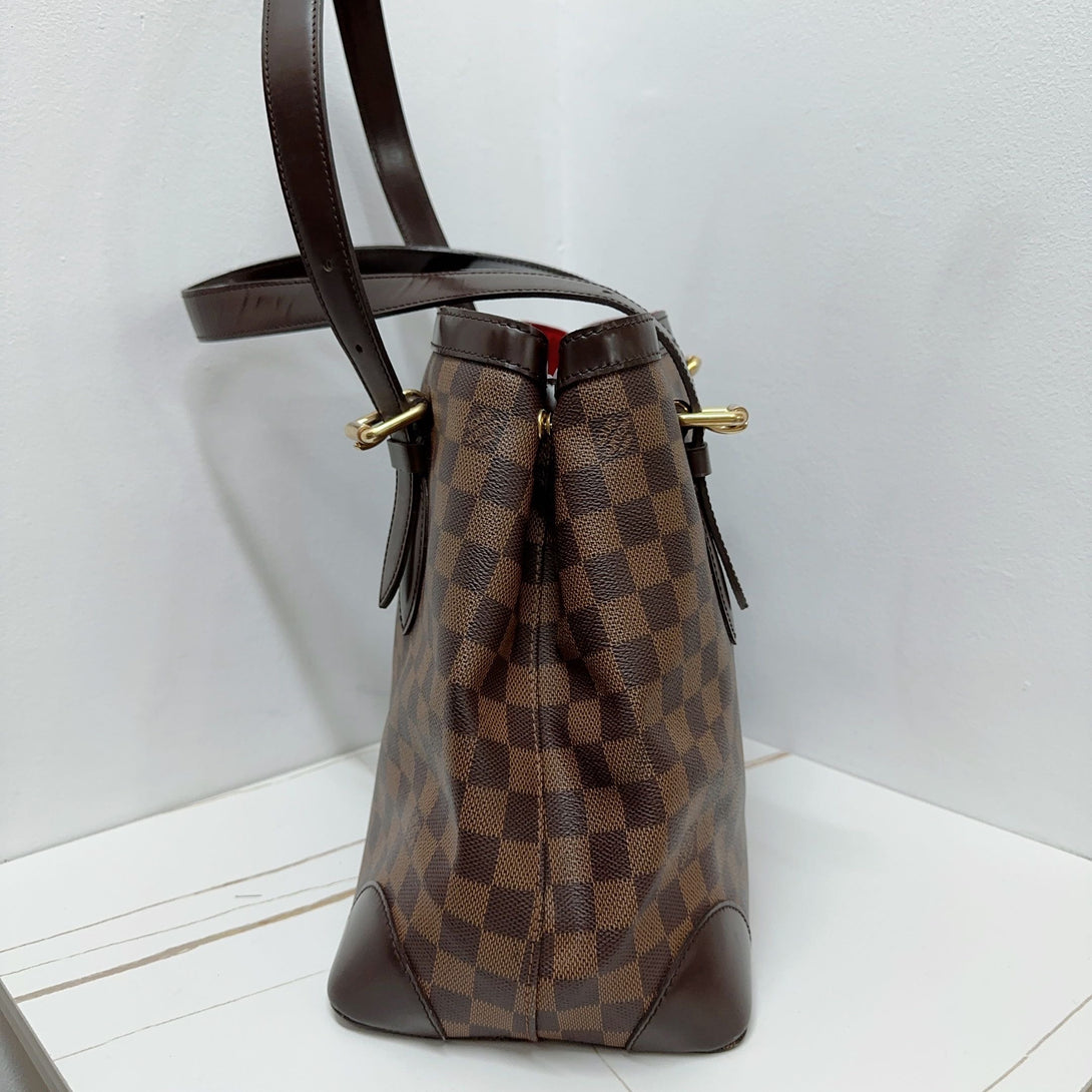 The pre-owned Louis Vuitton Hampstead Handbag in Damier MM canvas combines timeless elegance with practical design. Crafted from durable Damier canvas and trimmed with natural cowhide leather, this handbag offers a spacious interior ideal for daily essentials. Its adjustable shoulder strap ensures comfortable wear, while the classic checkered pattern reflects Louis Vuitton’s signature style. A refined choice for those seeking both luxury and functionality in a versatile accessory.