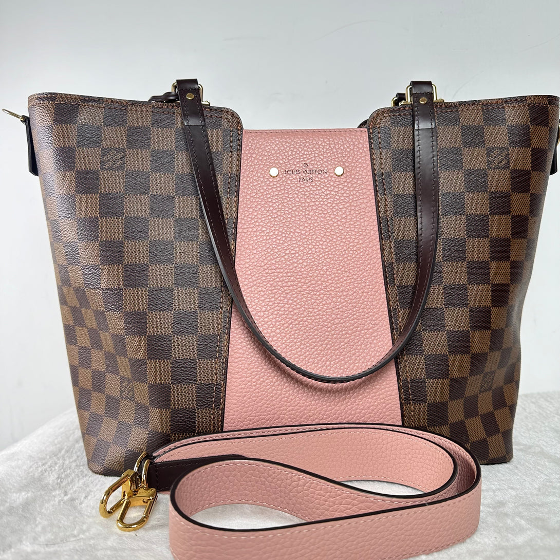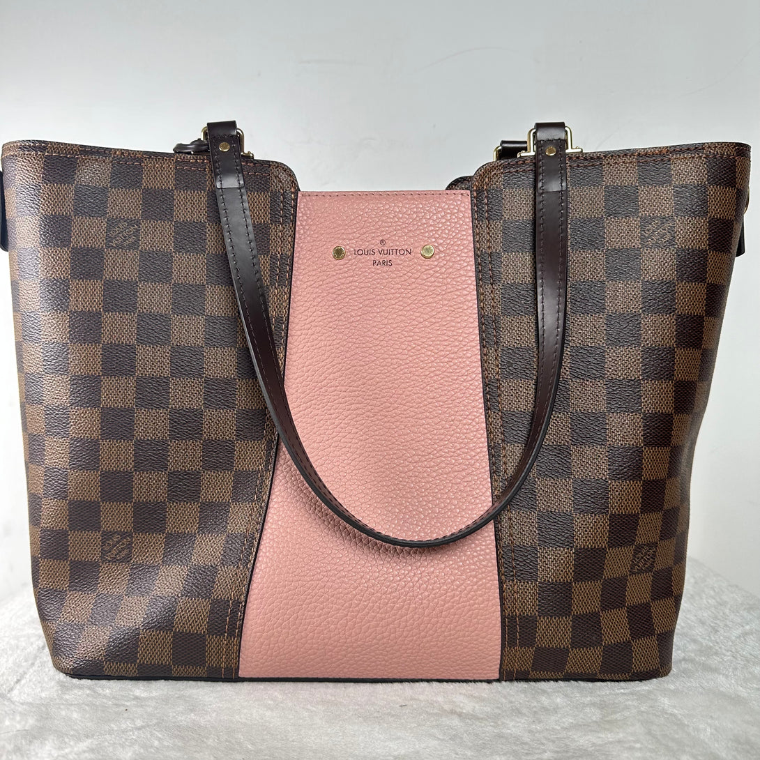 This pre-owned Louis Vuitton Jersey Handbag features the iconic Damier canvas paired with smooth leather accents, showcasing timeless craftsmanship and sophisticated design. Its durable materials ensure lasting elegance, while the spacious interior offers practical storage for everyday essentials. A refined accessory for those who appreciate luxury and heritage in their wardrobe.