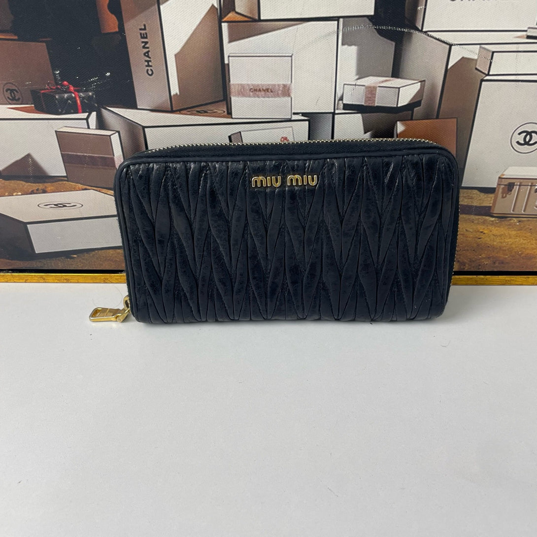 Pre-owned MiuMiu Black Calfskin Long Wallet