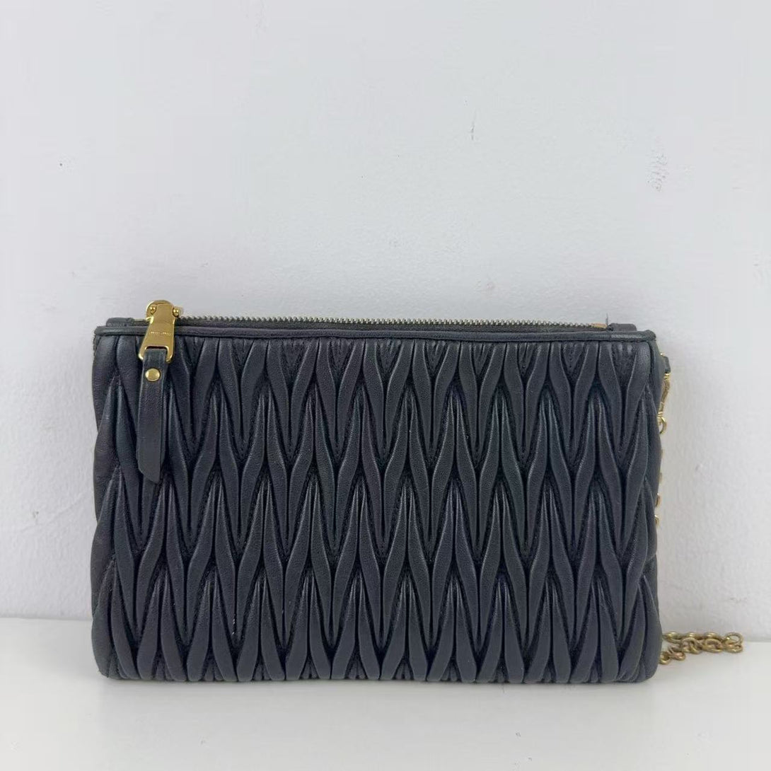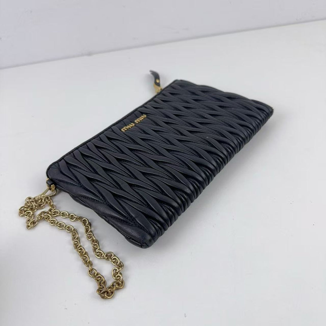 Pre-owned MiuMiu Black Pleating Calfskin Clutch/Crossbody