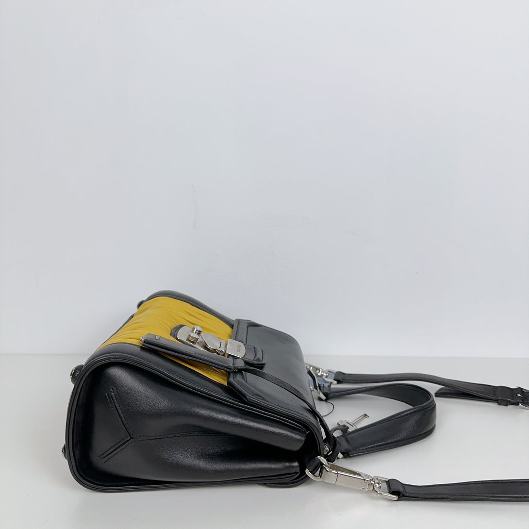This pre-owned Miu Miu calfskin padlock crossbody combines luxury craftsmanship with everyday practicality. Crafted from supple calfskin leather, it features a distinctive padlock detail that enhances its sophisticated design. Its compact size and adjustable strap make it an ideal accessory for hands-free convenience while maintaining a refined look. Perfect for those seeking timeless elegance with reliable durability in a versatile crossbody bag.