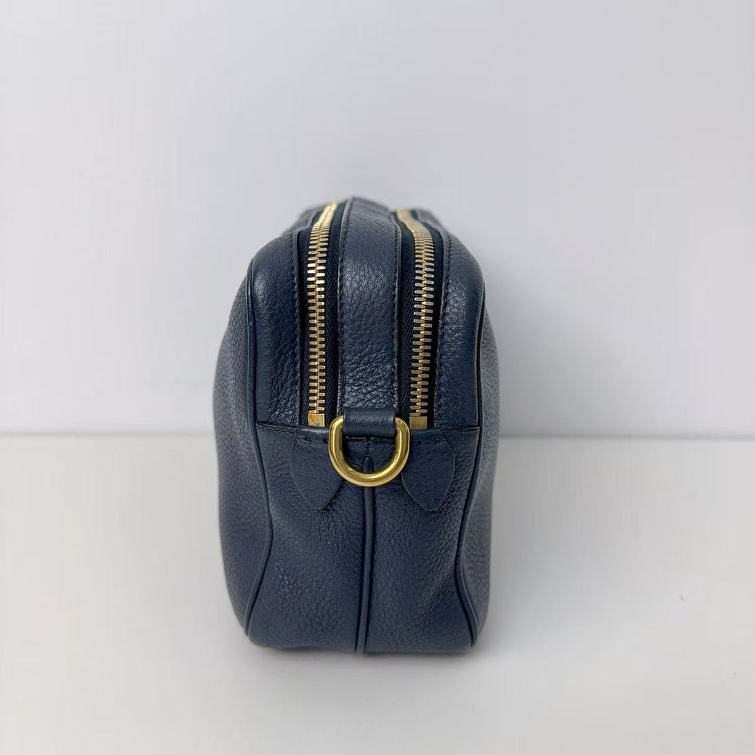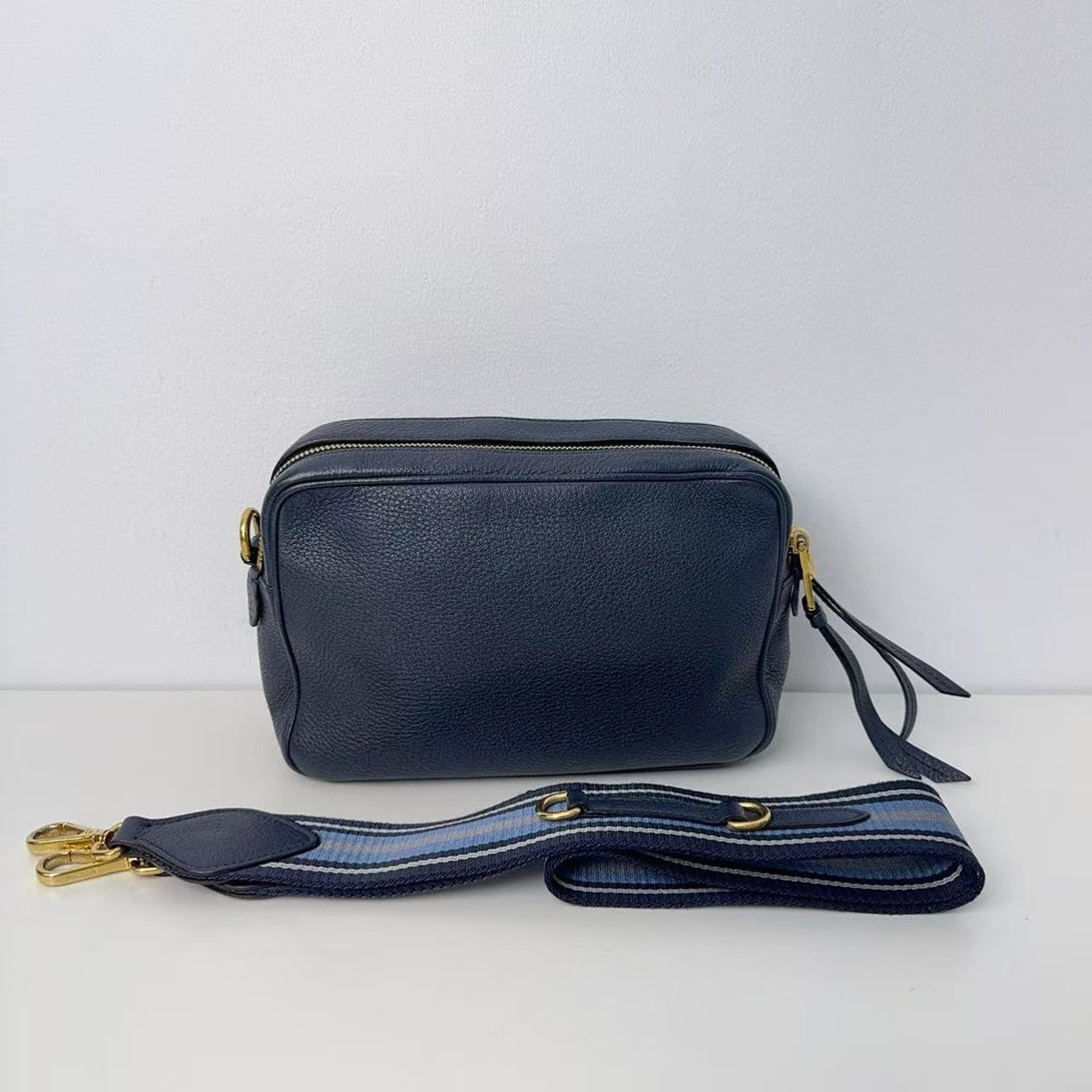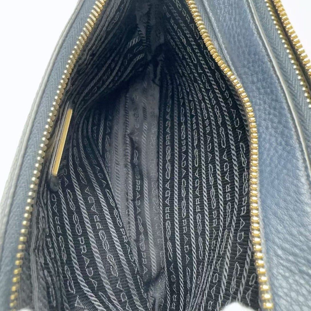This pre-owned Prada crossbody bag, crafted from black textured calfskin, combines luxury with practicality. Its durable leather surface offers a sophisticated look while resisting daily wear. Designed for hands-free convenience, it provides ample space for essentials without sacrificing style. A timeless accessory that elevates any outfit with expert craftsmanship and understated elegance.