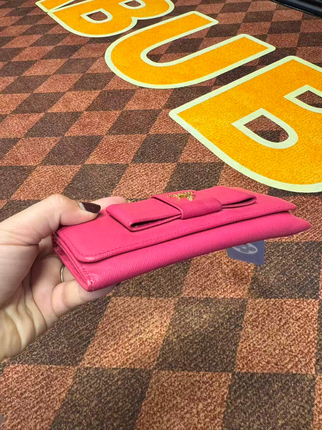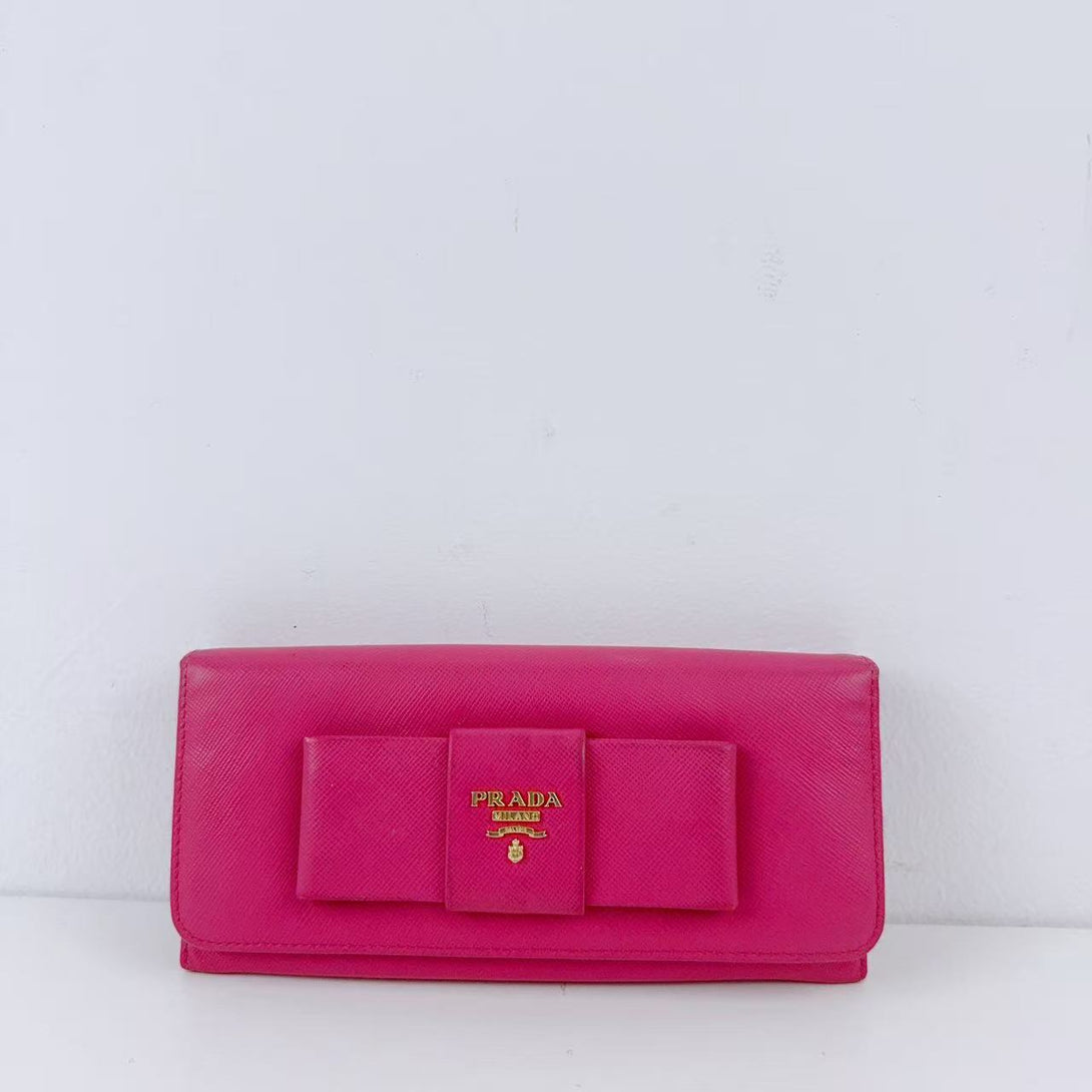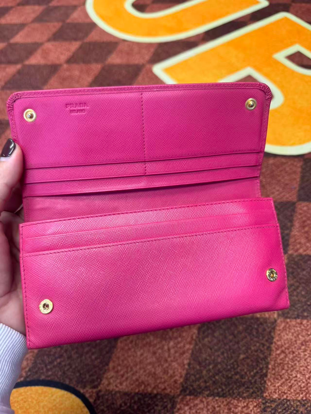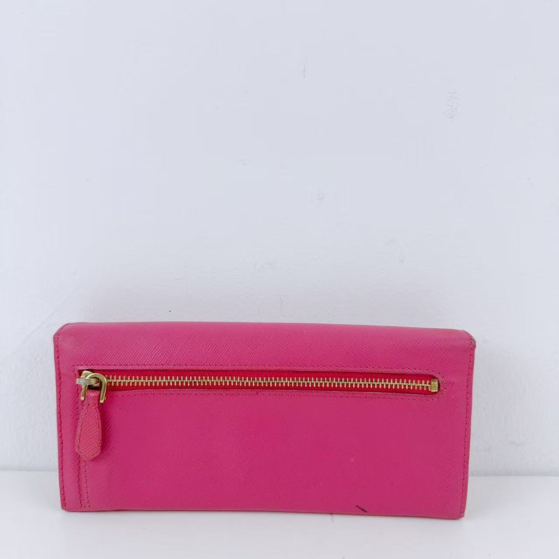 Pre-owned Prada Hot Pink Saffano Textured Calfskin Long Wallet