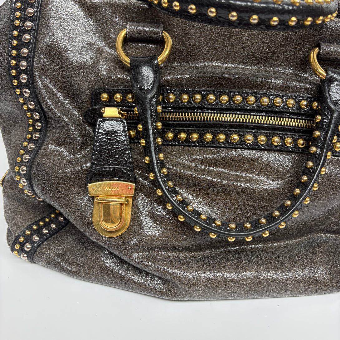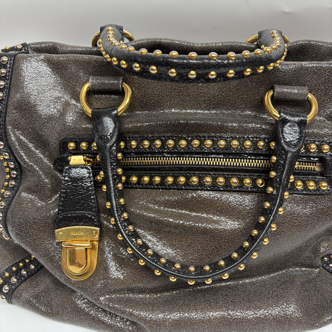 Pre-owned Prada Metallic Calfskin Studs Handbag/Crossbody