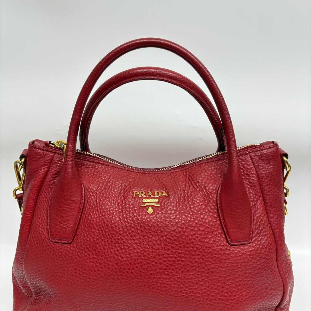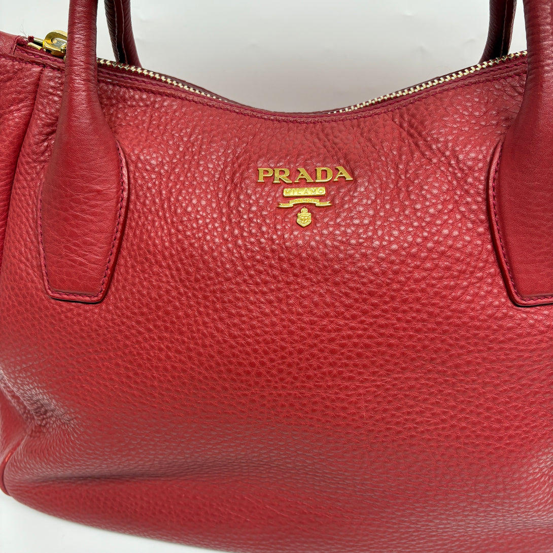 Pre-owned Prada Red Pebbled Calfskin Handbag/Crossbody