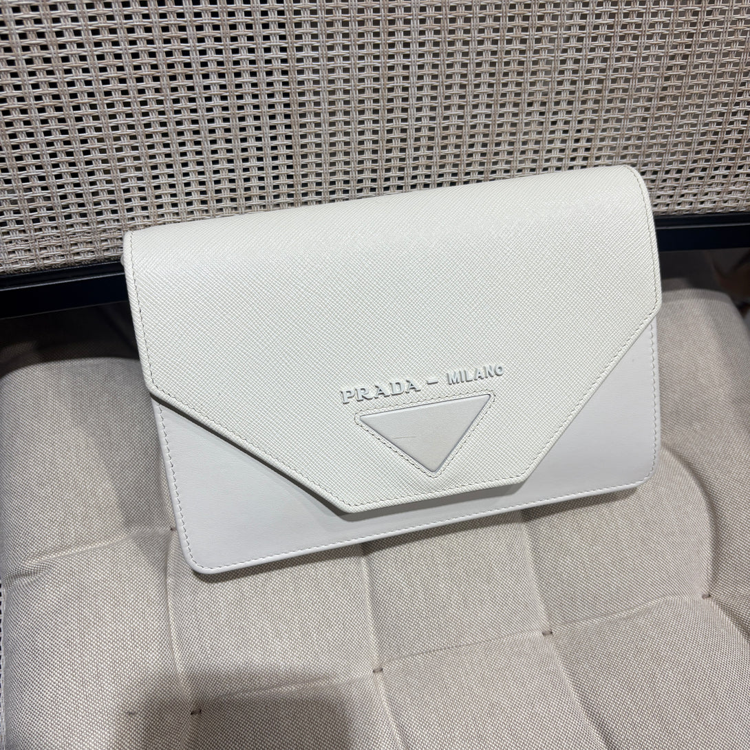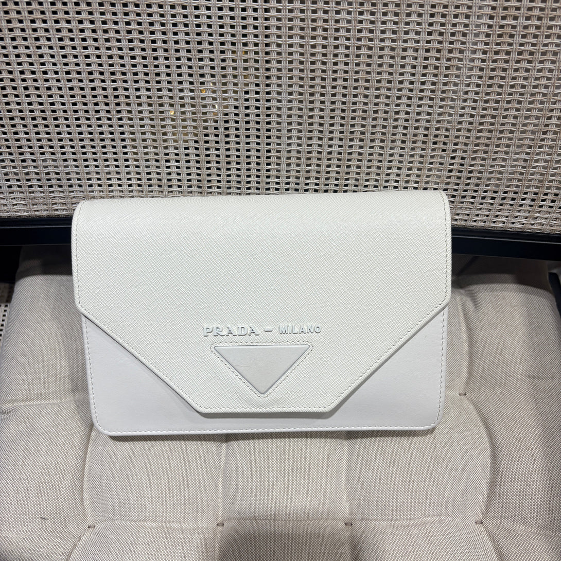 Pre-owned Prada White Calfskin Envelop Crossbody