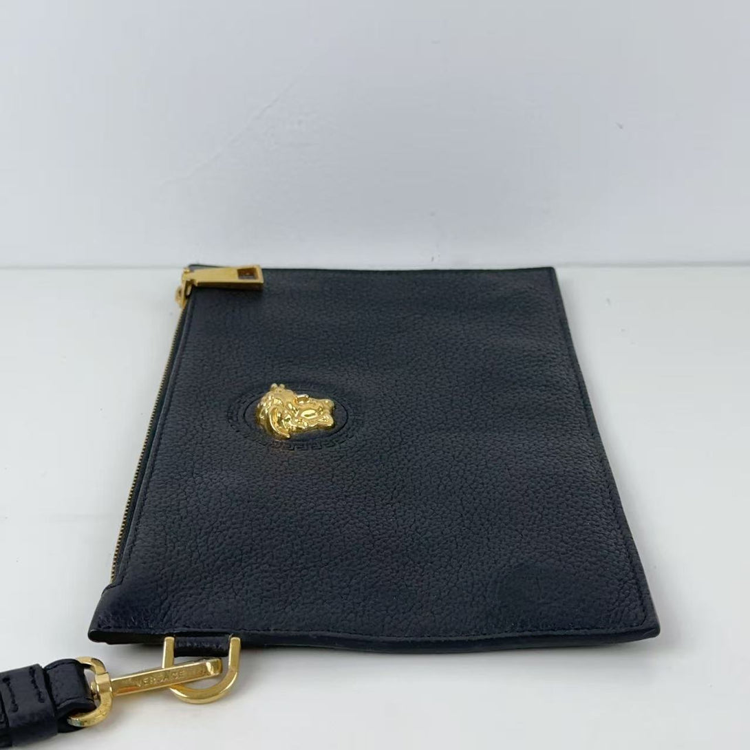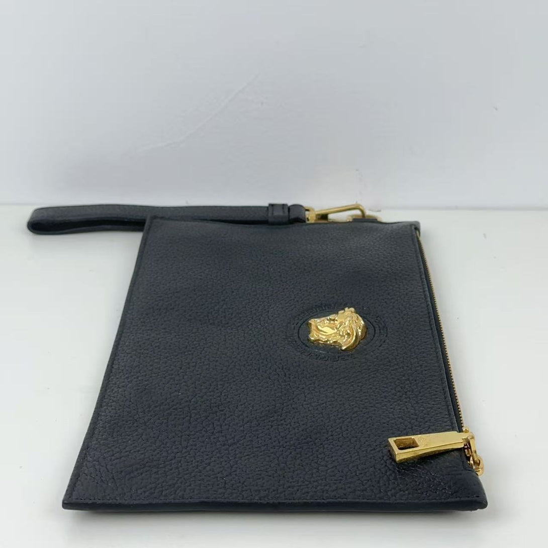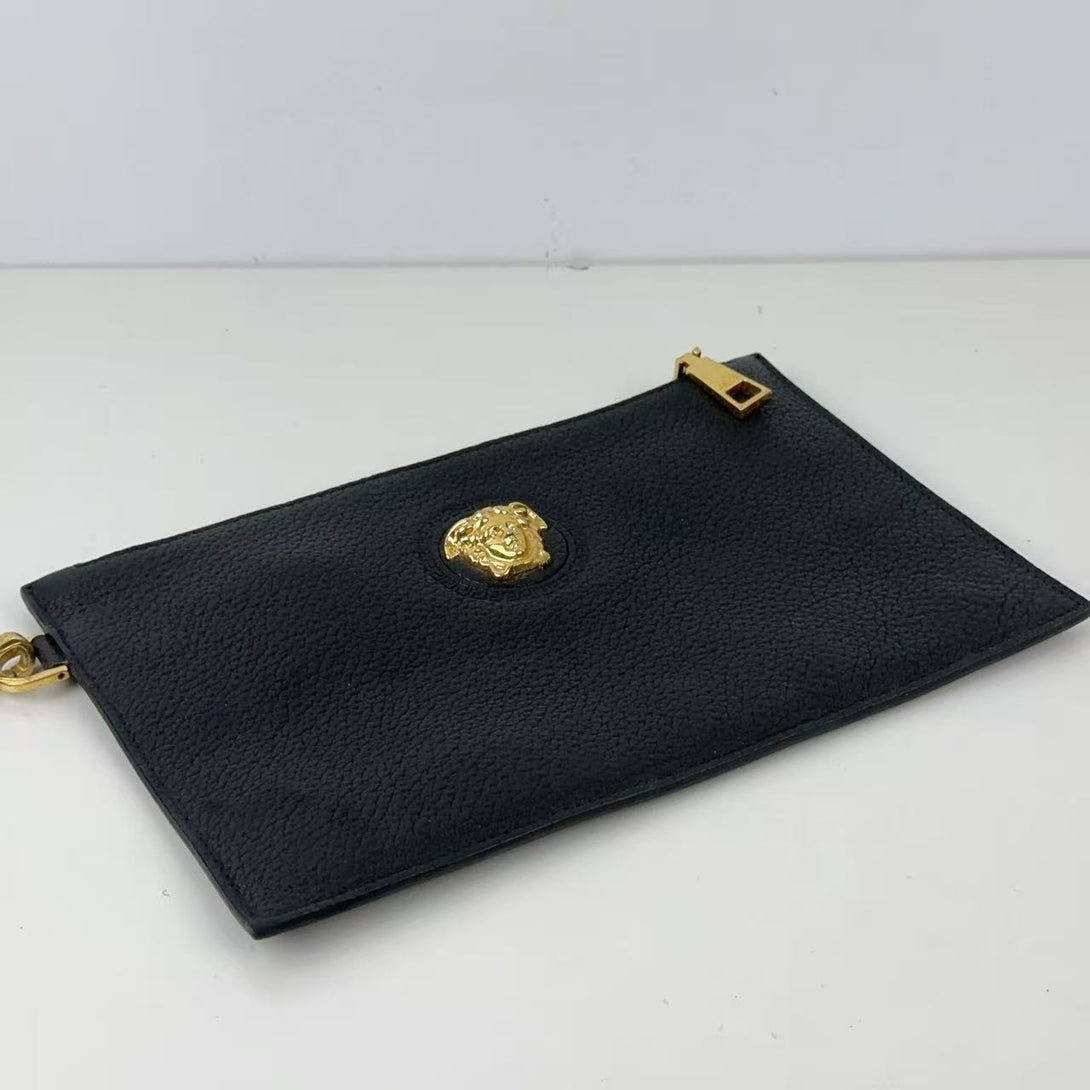Pre-owned Versace Black Calfskin Golden Handware Clutch